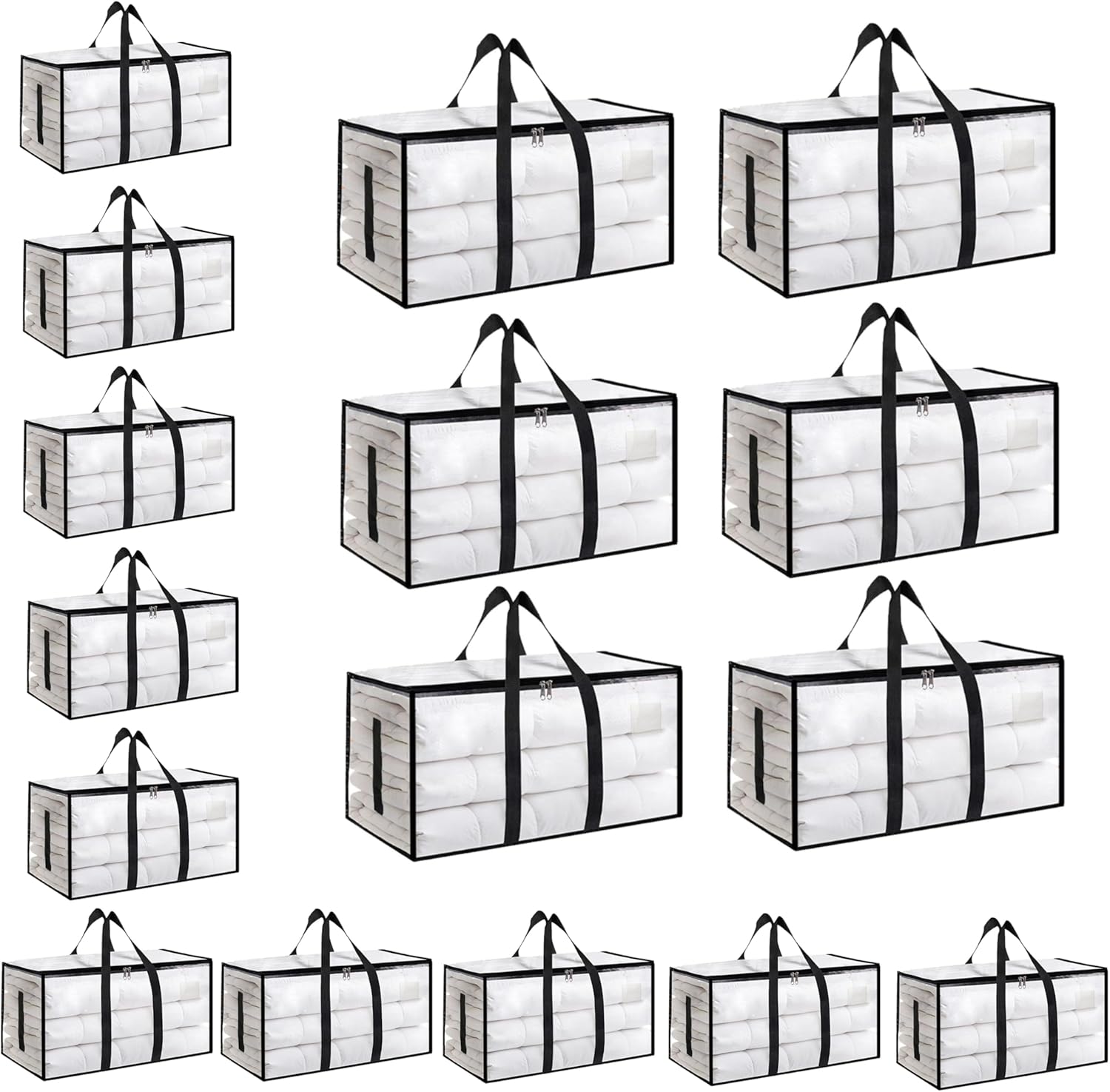 SummitFlare 95L Jumbo Moving Bags – Reusable, Waterproof, and Built to Last Moving just got smarter. Whether you're a college student heading to campus, a family relocating across town, or someone who simply needs better seasonal storage, our 95L Jumbo Moving Bags are designed to replace bulky boxes and flimsy trash bags for good. ❓ Why Switch to Moving Bags? Cardboard boxes are single-use. Garbage bags are prone to breakage. Our reusable moving bags are built for the long haul – 3X stronger than standard moving boxes, with a 300+ trip lifespan. 📦 Pro-Grade Capacity That Handles the Heavy Stuff 95L / 25Gal Jumbo Size: 28"" x 13"" x 15"" – perfectly sized for bulky items like bedding, winter coats, comforters, pillows, and dorm essentials. 65lb Load Limit: Reinforced construction holds up to 65lbs without straining. 180GSM Coated Polypropylene: Thicker, tougher material that withstands rough handling, stacking, and repeated use. 🛠️ Zero Assembly – Pack 6X Faster Say goodbye to cutting boxes, fumbling with tape, and broken box flaps. Our bags are ready to use the moment you open them. ✅ Triple-stitched seams for tear-proof reliability ✅ No assembly required – fill, zip, and move Perfect for college move-in/out days, last-minute packing, or quick room cleanouts. ⚙️ Military-Grade Upgrades You Can Feel We didn't cut corners. Every detail is engineered for durability and comfort: ✔ 2"" Wide Padded Handles: Reduces hand strain by 50% – even when fully loaded, your hands won't ache. ✔ Reinforced Zippers: Tested to 30,000+ open/close cycles – no jamming, no breaking. ✔ MoistureLock Waterproof Coating: Protects your belongings from rain, spills, and damp basement floors. ✔ Anti-Puncture Diamond Stitching: Double-layered reinforcement at stress points prevents tearing. 🏠 Smart Space Saver – Folds Flat When Not in Use Unlike rigid plastic bins, our bags fold flat in seconds to just 1.5"" thick. Slide them under beds, behind sofas, or into closet corners when empty. Year-Round Versatility: ✅ Seasonal storage (winter coats, holiday decorations) ✅ Camping gear organizer ✅ Disaster preparedness kit storage ✅ Laundry hamper for dorms ✔ Apartment-Friendly Dimensions: Fits through doorways, into elevators, and stacks neatly in moving trucks. ✔ Stackable When Filled: Flat-top design allows stable stacking – no toppling over during transport. ✔ Airport Luggage Compliant: Sturdy enough for checked baggage – use for road trips or flying home with gear. ✔ Machine-Washable Lining: Easy to clean between uses – just wipe or toss in the wash. ✅ 60-Day Replacement Warranty We stand by our quality. If your bag fails within 60 days due to manufacturing defects, we'll replace it – no questions asked.