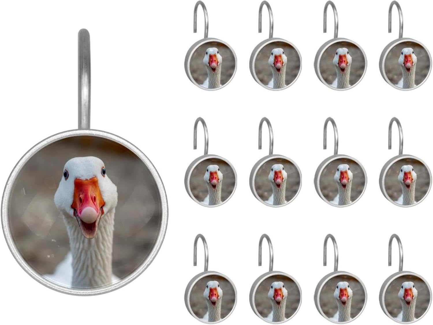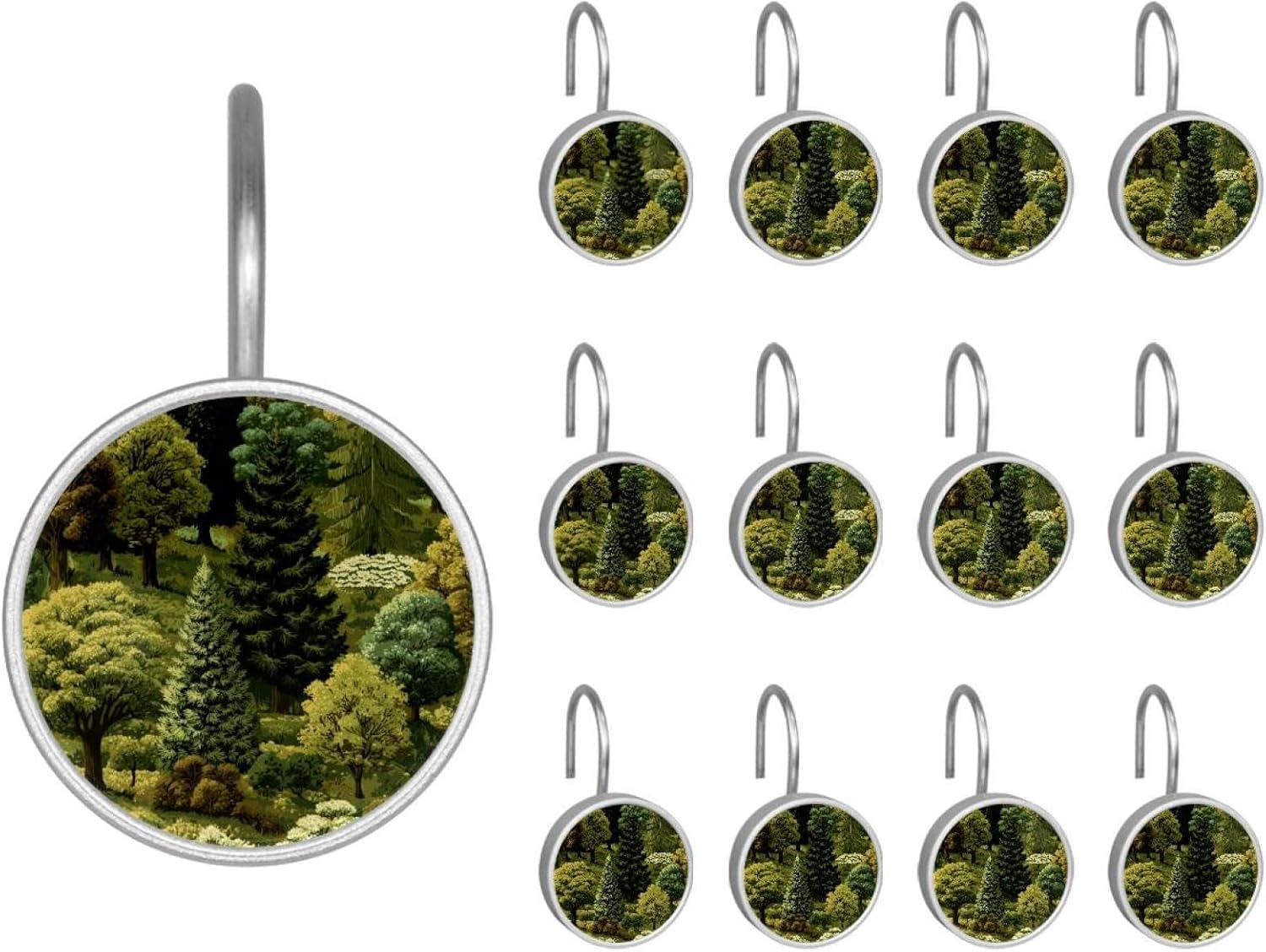 MATERIAL: glass, stainless steel. These shower curtain hooks can be decoration bathroom and will be long-lasting.12 pieces of shower curtain hooks, round crystal glass decoration, printed patterns, silver hooks to match various styles of bathroom shower curtains. SIZE: Crystal glass diameter of round shower curtain hook is 1.45x1.45in/ 3.7x3.7cm. The shower curtain hooks diameter is about 1.1in, 12 pieces shower curtain hooks are suitable for rod of 8-28mm(0.3"-1.1"). RUST RESISTANT:Shower hooks are made of stainless steel and crystal glass, which is durable, rust-proof and corrosion-resistant, it will not rust suitable for wet bathroom environment. EASY TO INSTALL:Hand the shower curtain hooks hold securely on straight or curved shower curtain rods,slid easily and smoothly. Easy to install and decorate your bathroom. BEAUTIFUL AND ELEGANT:Beautiful Love hook add charming scenery for your bathroom, baby room, bedroom, living room, and the gorgeous style is easy to match with any kinds of bathroom shower curtain. EASY GLIDE: Open and close your shower curtain quickly and easily with the Shower Hooks, easily glides on shower curtain rods and tension rods. No snagging; no effort; no hassle PACKAGE: 12 shower curtain hooks in a pack.The bathroom curtain hook has a smooth appearance and can be hung on the pole to pull it at will. Special price 12 sets to meet your needs.