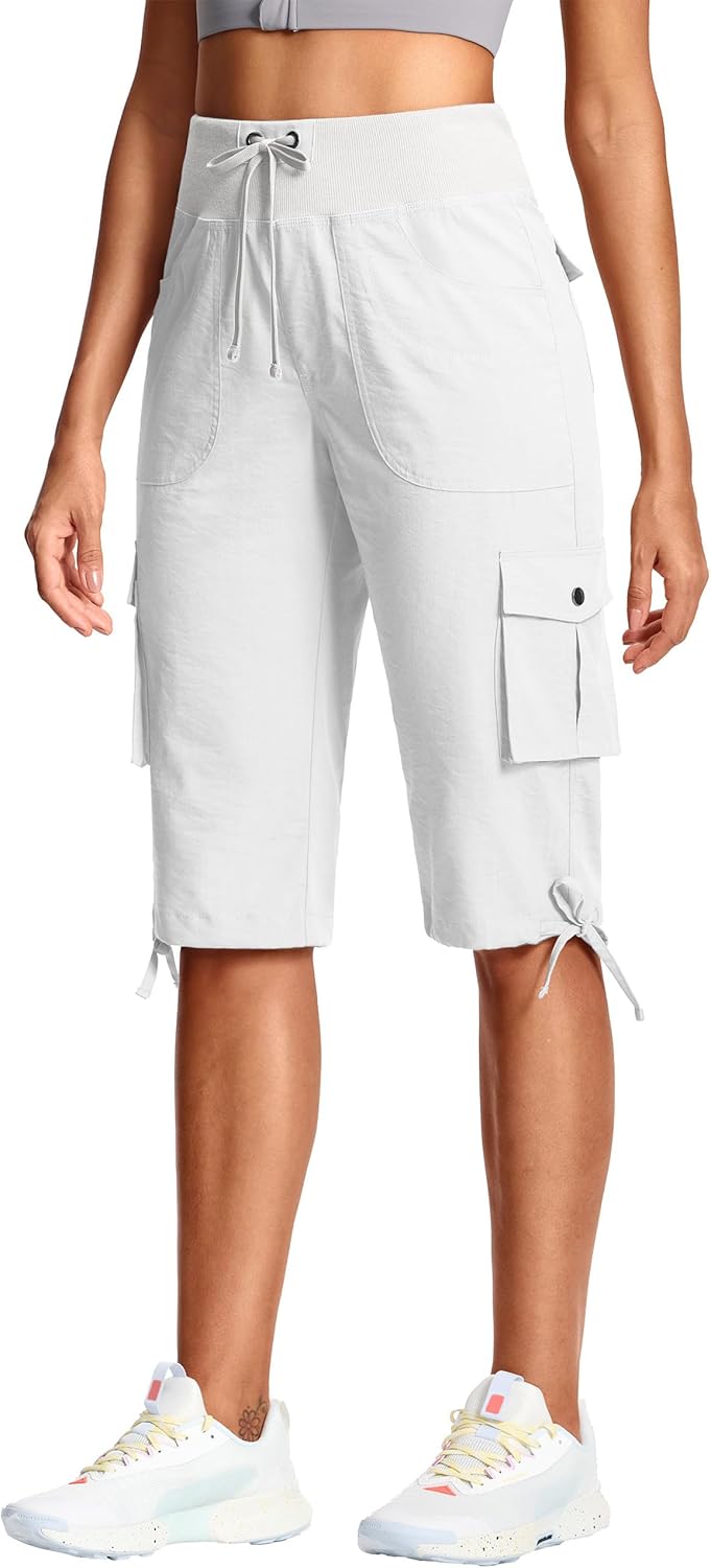 ISEEGZ 15"/ 18" Capri Pants for Women Cargo Hiking Pants Lightweight Women's Capris with 6 Pockets Summer Casual Travel