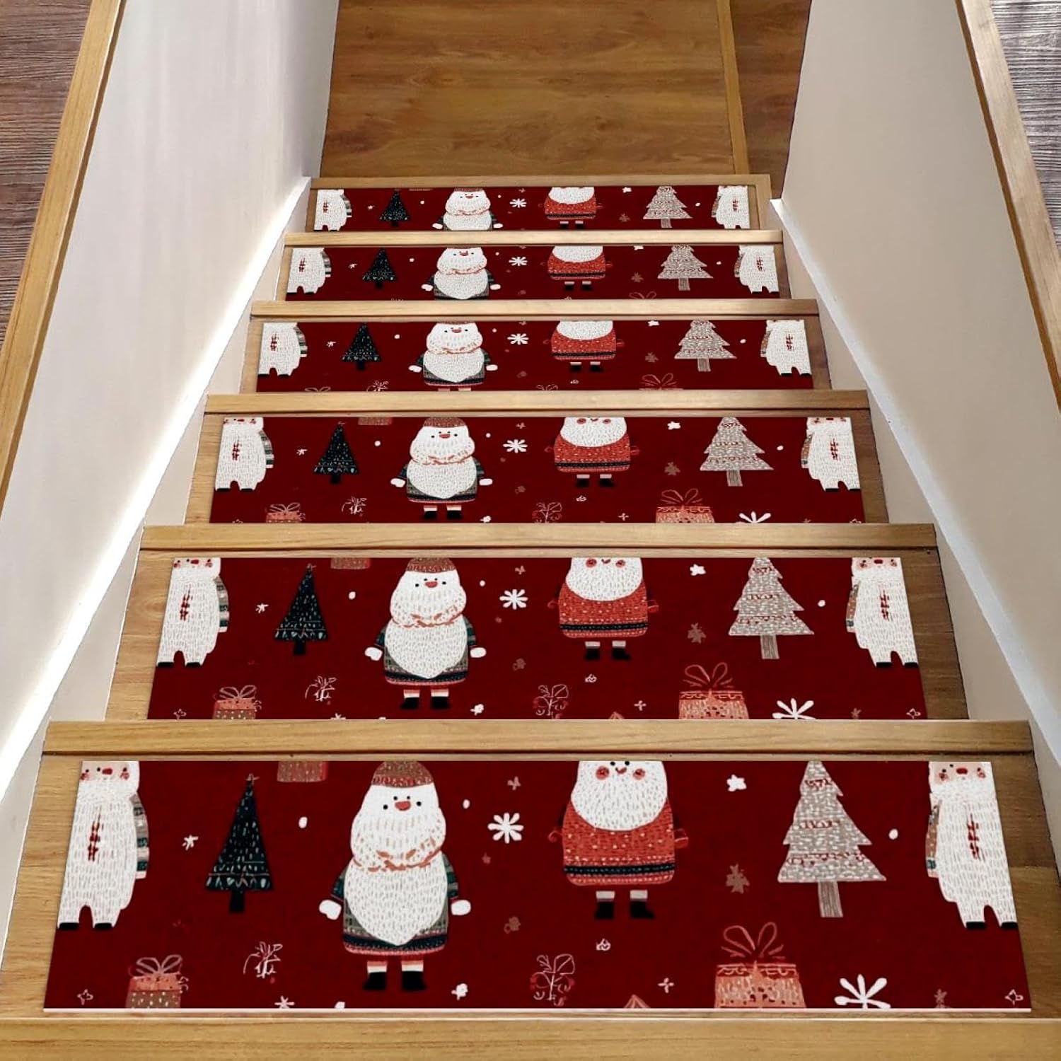 ・Size: 30 x 8 in / 76 x 20 cm, 5 mm thickness. ・Material: The polyester surface absorbs water, preventing stains on the floor. The TPE back is non-slip and water-resistant, preventing damage to the stairs. ・Package Contains: 15 pieces of 30x8in (about 76x20cm) stair mats, 5mm thick. Suitable for most needs. Each stairway treads rugs is individually wrapped. ・Easy to Clean: Vacuum, hand wash or machine wash. The stair runners for wooden steps can be machine washed, preferably hand washed, or vacuumed. Do not use bleach or tumble dry at high temperatures, drying at appropriate low temperatures will give you a comfortable texture. ・Noise Reduction of Stair Treads: By adding our stair runner, not only can you protect your floors, but you can also significantly diminish the noise caused by walking up and down the stairs. Stair rugs can decorate your stairs, create a warm home atmosphere, you can enjoy a peaceful and quiet home environment without disturbances. ・Easy to Remove Adhesive Backing: When you want to replace the stair treads non slip, the adhesive backing easily removes without leaving residue on the steps. ・Holiday Design: Stair carpet treads are designed specifically for Christmas,Halloween, Thanksgiving Day features classic festival elements and vivid printing styles,creating beautiful and stunning visual effects for you. This holiday themed stair treads can easily help you add a strong festive atmosphere, bringing charming and exquisite holiday decorations.