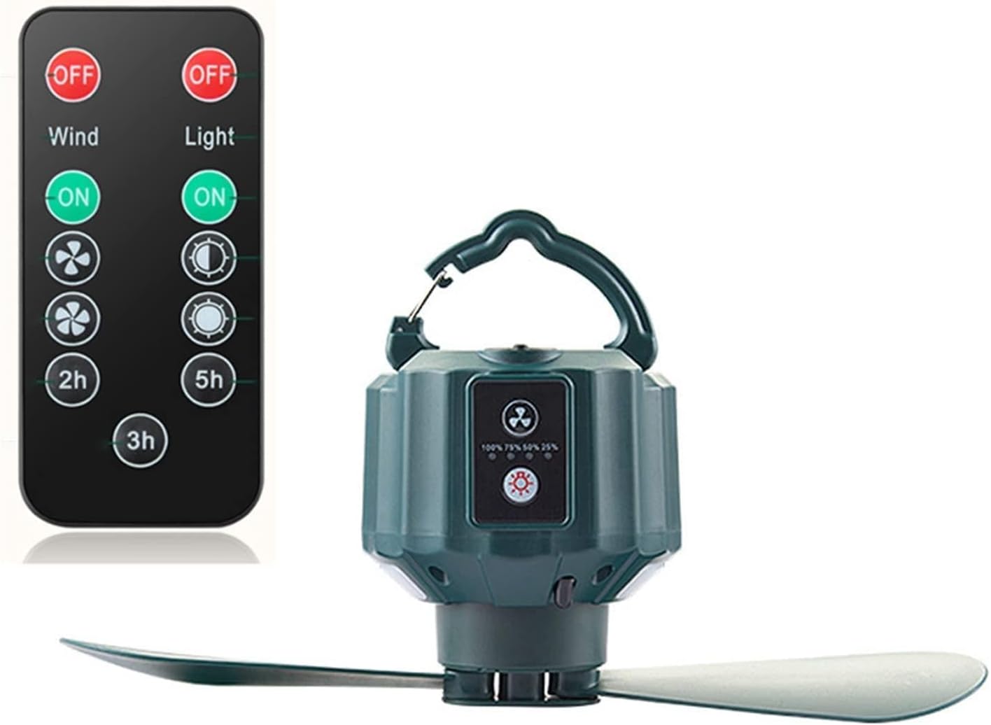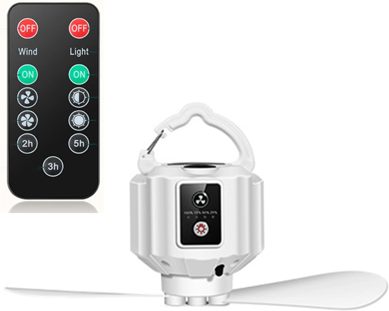 2 in 1 Portable LED Camping with Ceiling Fan Light Rechargeable Hanging Tent Light 5200/10400mah for CampingFeatures:and Our personal fan is equipped with a remote control. You can operate the fan by the remote control, and use it for air volume light The ceiling fan has 3-speed settings to meet your different needs for While bringing strong power, it can be quiet, energy-saving, and stable for a long for time. In addition, this celling fan is designed with a LED light, which can be used in tents or room at night.This travel camping fan runs on a rechargeable built-in 5200mAh/10400mAh battery that can be charged with a Type C cable.Our ceiling fan is compact that has a built-in carry handle, to it on the tents, branches, or inside for cars. Lightweight compact, easy to carry.This fan's beautiful and exquisite appearance and practical functions will be an exclusive surprise gift.Specifications:ABS Type A B Color Green White Battery Capacity:5200mah/10400mah Size:Approx.260x86x168mm/10.23x6.61x3.38 inchesPackage Includes:1 Set Ceiling FanNote:1.Please allow 1-2cm errors due to manual measurement, make sure that you do not mind before you order. 2.Due to the difference between different monitors, the picture may not reflect the actual color of the item.