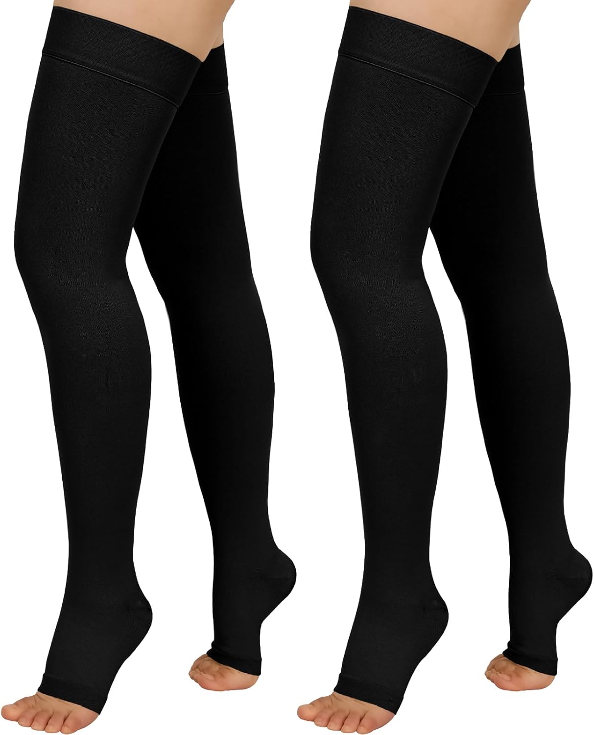 2 Pairs Compression Stockings for Women & Men, 20-30mmHg Thigh High Compression Socks, Open Toe Medical Compression Socks with Silicone Dot Band-Best Support for Nursing Sports Varicose Veins