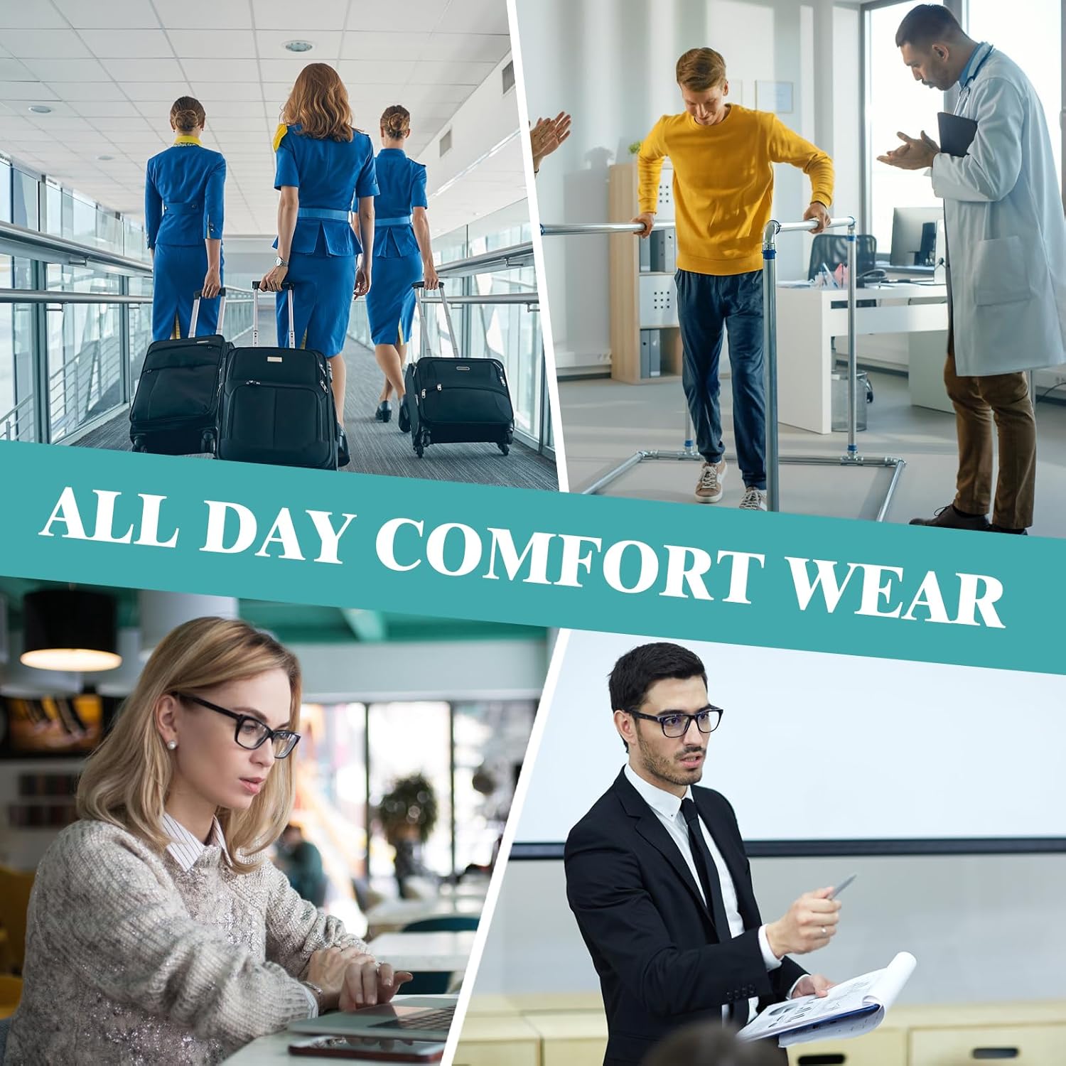 • ⭐ALL-DAY COMFORT: Our compression socks for women and men are made of air-covered spandex yarn and nylon which makes people wear breathably and comfortably all day. The silicone dotted band ensures the socks remain in place throughout the day without constricting the leg.
