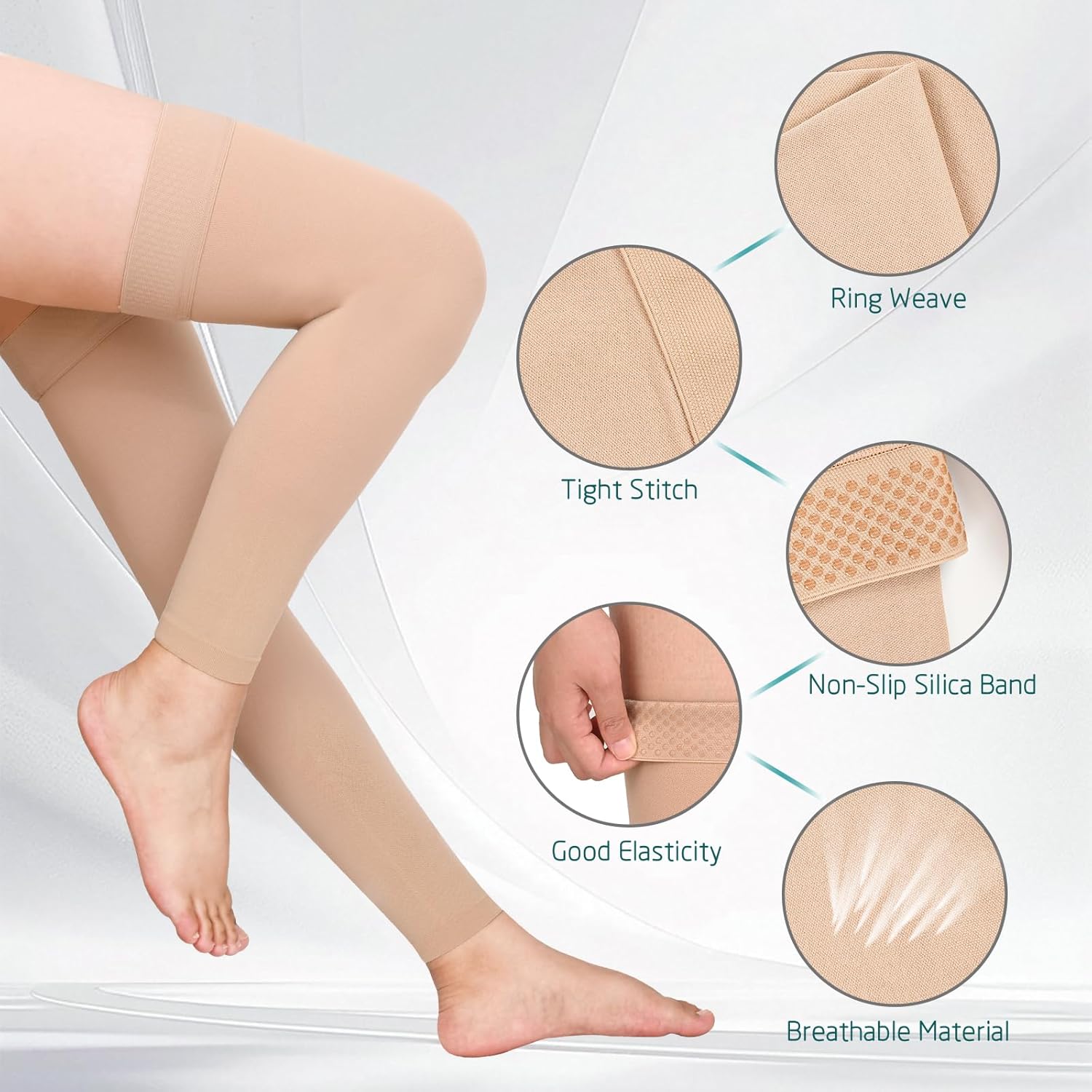 • ⭐SATISFACTORY SERVICE: Your health and comfort is our principle! Please measure your leg circumference accurately before you place an order. This can greatly reduce the probability of you purchasing an inappropriate size. If you meet any problems with the thigh compression socks, please contact us at any time, we will definitely help you solve problems as soon as possible.