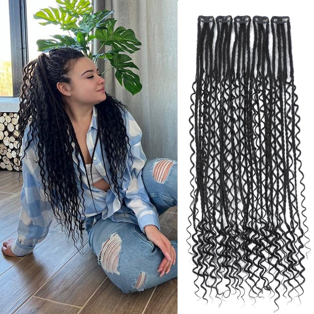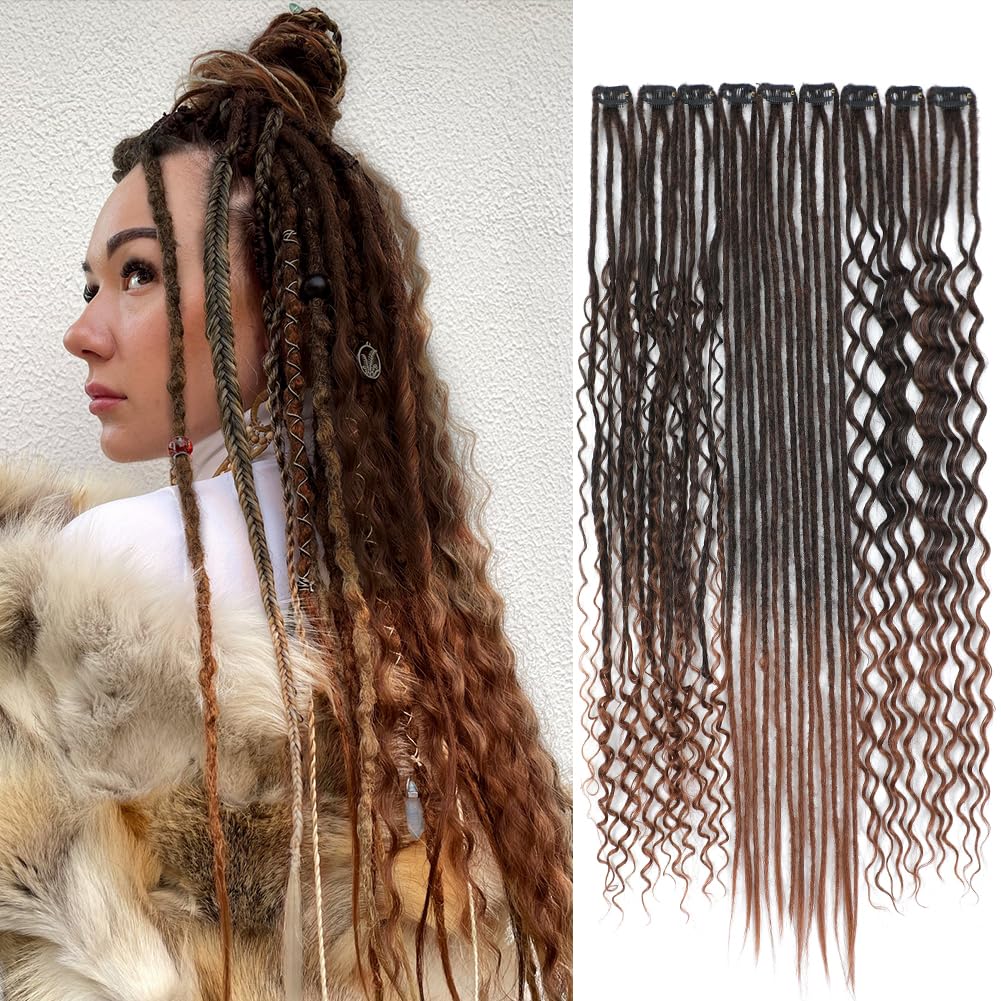 24inches 9PCS Clip in Dreadlock Extension Sets,36 Strands 3 Styles in 1 Mixed Straight Wavy Boho Thin Soft Clip in Dreads Extension Sets for Women (1B#,9 Clips)