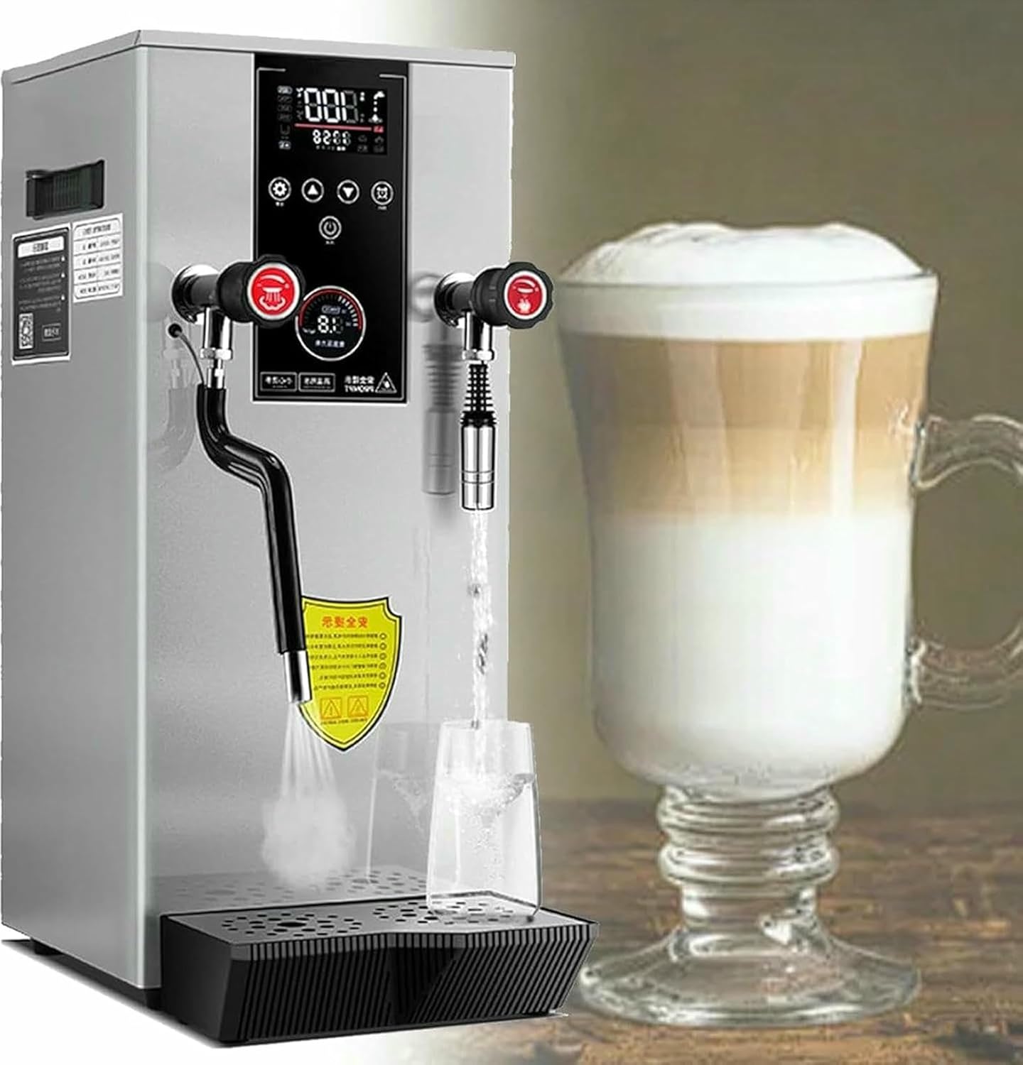 This is a Multi-purpose Machine with the Functions of Water Boiling Machine, Milk Foam Maker, Steam Maker and so On. The Steam Milk Froth Machine Has Two Water Outlets, Which Can Make Coffee and Milk Froth at the Same Time, And the Production Efficiency Is Higher.Features:One Machine with Multiple Functions, A Machine with Multiple Functions Such as Boiling Water, Steam, Milk Froth, And Tea.The LED Lcd Screen Displays Real-Time Temperature and Observes the Status of the Machine in Real Time.2500w High Power, Rapid and Full Boiling, Uninterrupted Steam.The 360° Water Valve Can Be Rotated at Will for Use at 360°Specifications:Product name: Commercial steam milk frotherProduct model: -12LVoltage frequency: 220V/50HZSteam pressure: 0.1-4.0barRated power: 2500wInner tank material: 304 stainless steelApplicable water pressure: 0.1-0.4MPAWaterproof grade: IPX3Product color: Black, white, silverProduct size: 268*455*648mmPackage Included:1x Steam Water Boiling Machine