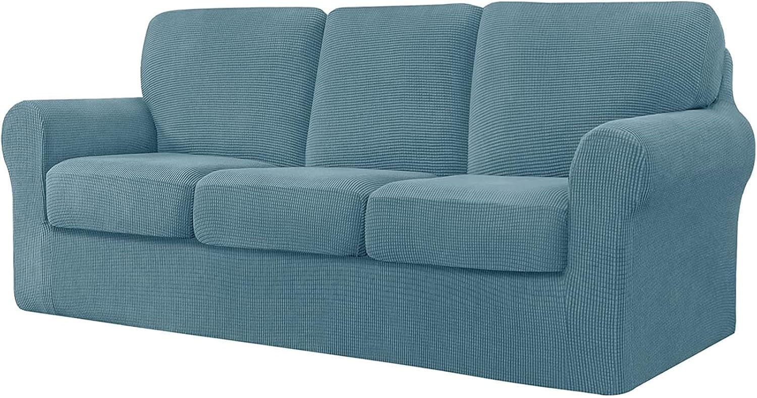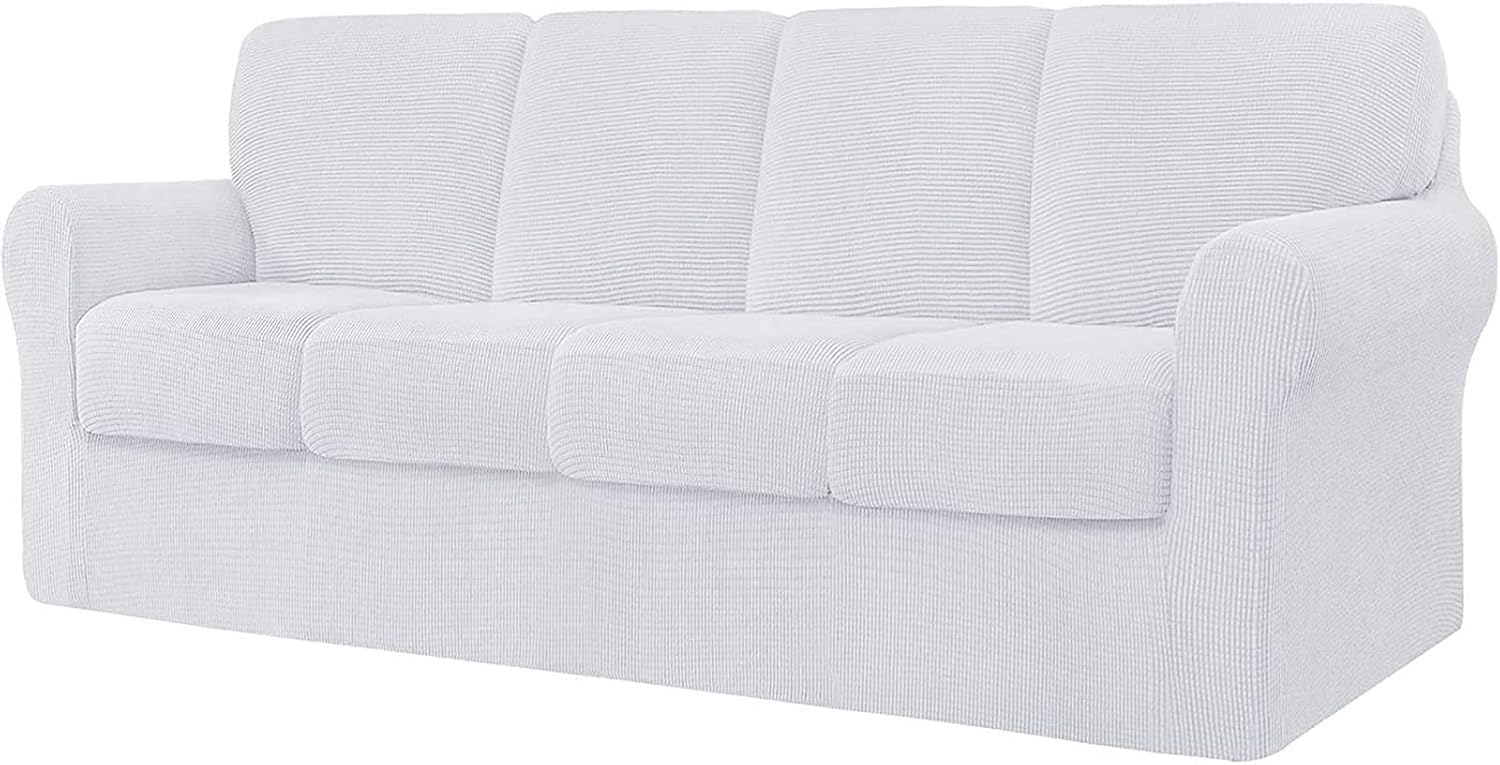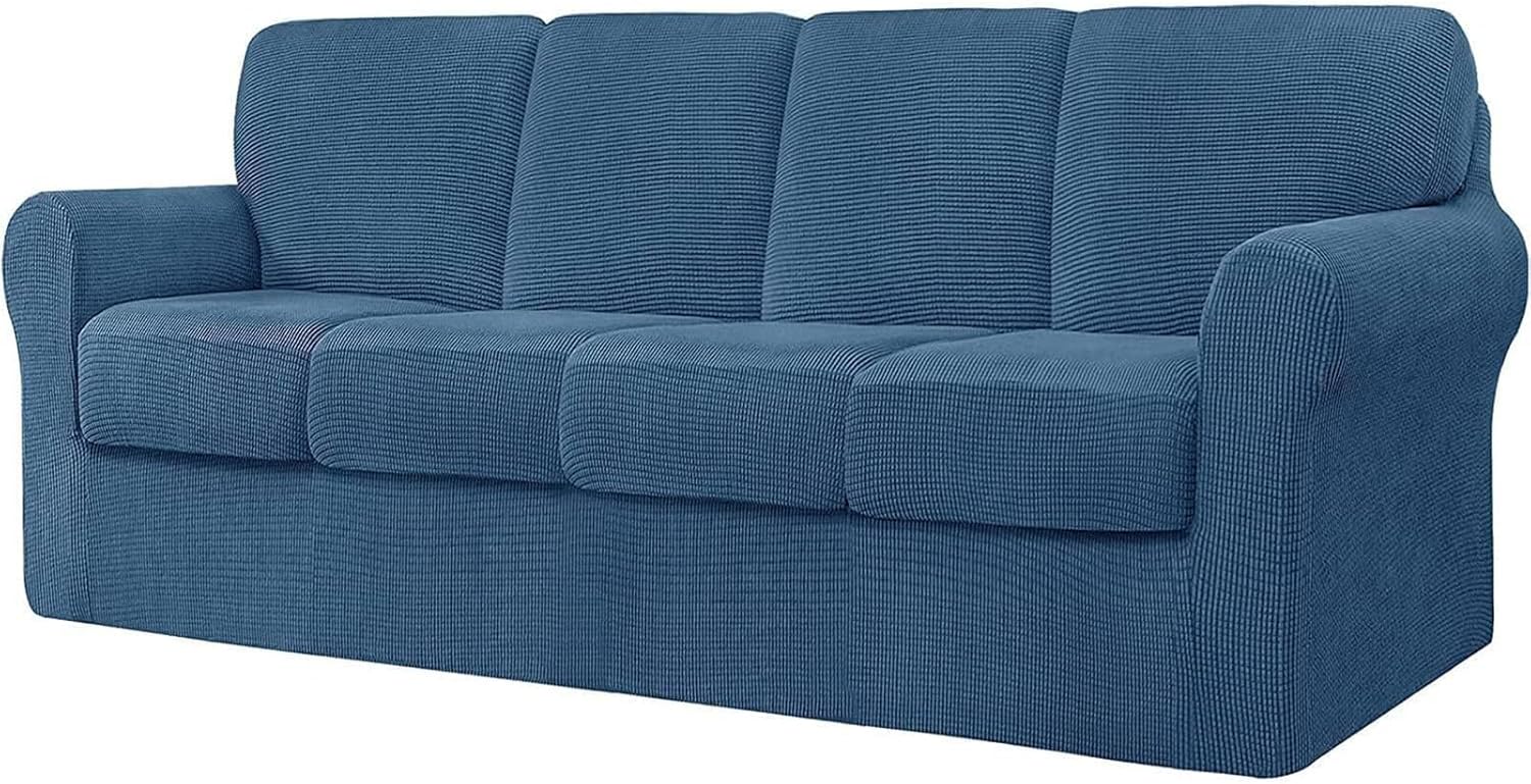 Premium Material: Crafted from 85% polyester and 15% spandex jacquard fabric, our sofa couch covers are smooth, soft, and extra stretchy.Anti-Slip Design: Features a durable elastic strap at the bottom to prevent the slipcover from slipping or getting loose.Protection and Decoration: Protects your sofa from stains, pet hair, damages, and tears, while also refreshing and decorating old couches. Perfect for homes with children, cats, dogs, and other pets.Available Sizes:3 Seater: Fits sofas with a length of 185-235cm.4 Seater: Fits sofas with a length of 235-300cm.Included Accessories:Seat Cushion Covers: Length: 51-70cm, Width: 51-64cm, Thickness: 5-23cm.T-Left, T-Right, and T-Middle Backrest Covers: Various dimensions for different sections of the sofa.Package Contents:1x Sofa Cover3/4x Seat Cushion Cover3/4x Backrest Cover