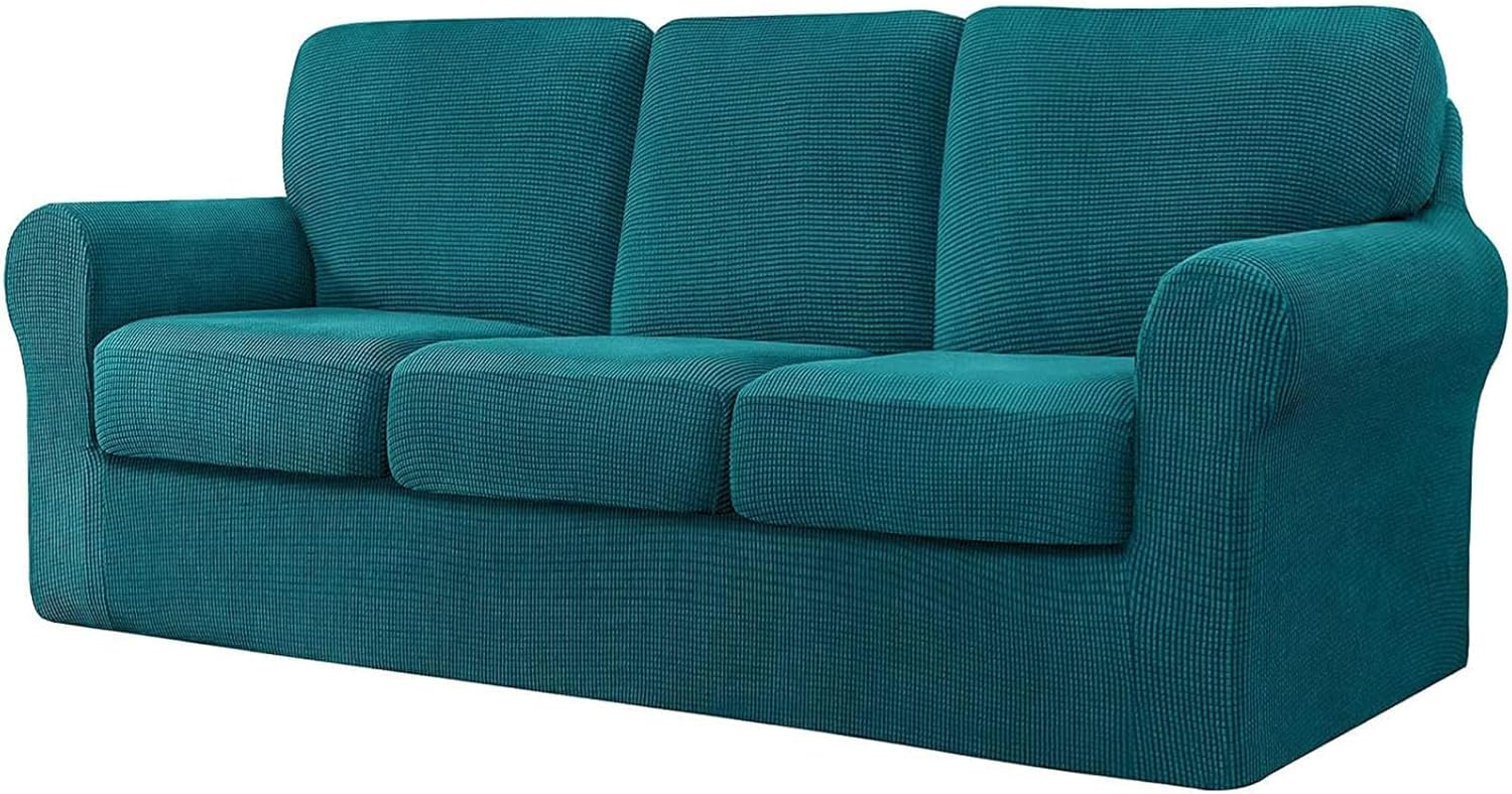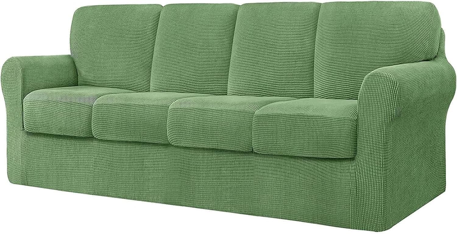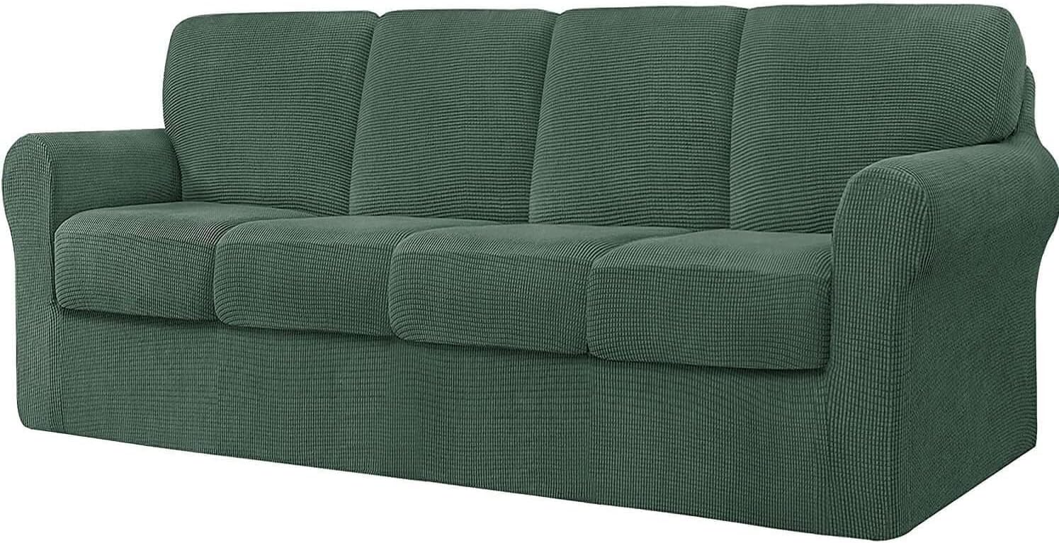 Premium Material: Crafted from 85% polyester and 15% spandex jacquard fabric, our sofa couch covers are smooth, soft, and extra stretchy.Anti-Slip Design: Features a durable elastic strap at the bottom to prevent the slipcover from slipping or getting loose.Protection and Decoration: Protects your sofa from stains, pet hair, damages, and tears, while also refreshing and decorating old couches. Perfect for homes with children, cats, dogs, and other pets.Available Sizes:3 Seater: Fits sofas with a length of 185-235cm.4 Seater: Fits sofas with a length of 235-300cm.Included Accessories:Seat Cushion Covers: Length: 51-70cm, Width: 51-64cm, Thickness: 5-23cm.T-Left, T-Right, and T-Middle Backrest Covers: Various dimensions for different sections of the sofa.Package Contents:1x Sofa Cover3/4x Seat Cushion Cover3/4x Backrest Cover