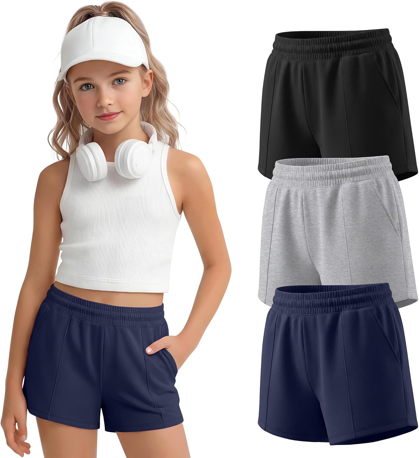 Features: Girls' basic shorts are made with stretchy, and breathable fabric, provide nice comfort and support during exercise, allowing your girl to enjoy her workout These girls' running shorts have two convenient pockets for storing small items and the shorts are both hand and machine washable, which can keep their color and shape wash after wash Specifications: Material: 60% polyester, 35% cotton, 5% spandex Package includes: 3 x Girls shorts Notes: Manual measurement, please allow slight errors on size. The color may exist a slight difference due to different screen displays.