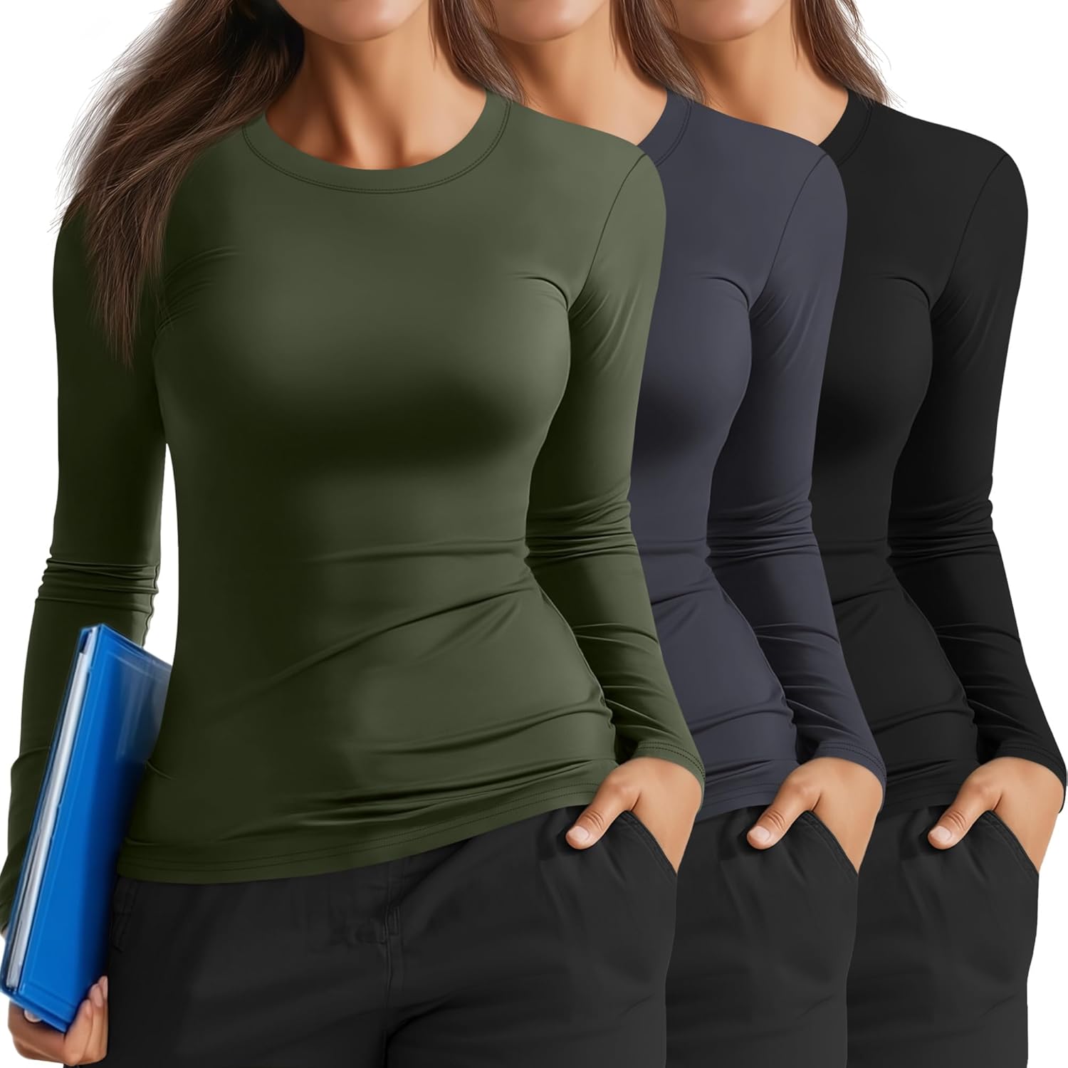 Features: Size selection: Please check our size chart before you place order for comfortable wearing. Clothing maintenance: Machine washable or hand wash with cold water. Do not bleach / lay flat to dry / do not iron at high temperature. Material: 65% Cotton, 30% Polyester, 5% Spandex Package includes: 3 x Women's plus size underscrub shirts Notes: Manual measurement, please allow slight errors on size. The color may exist a slight difference due to different screen