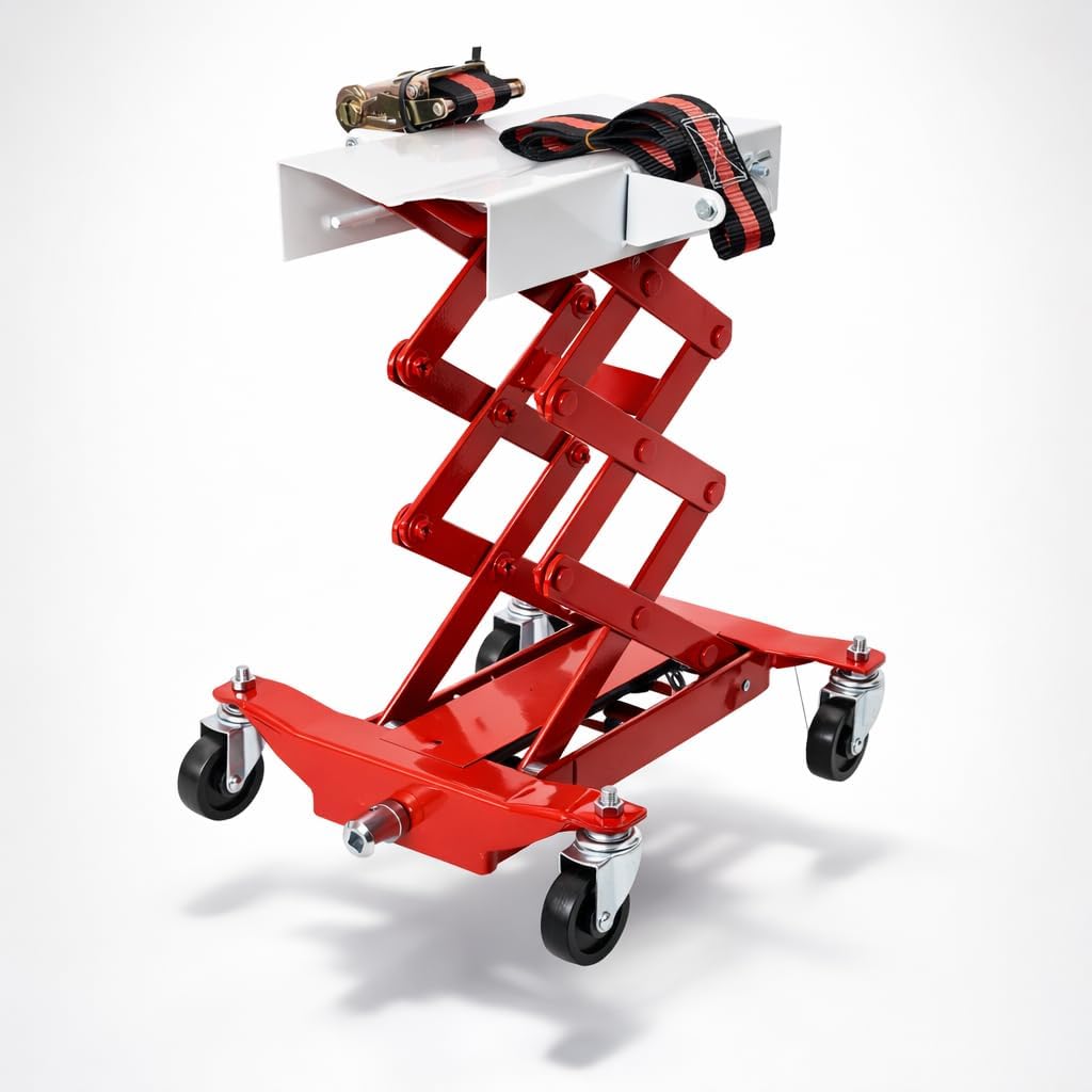 | Included Components | 1 x Foot Step Lever, 1 x User Manual, 4 x Heavy-Duty Rubber Wheels (2 Lockable), Motorcycle Scissor Jack Lift |