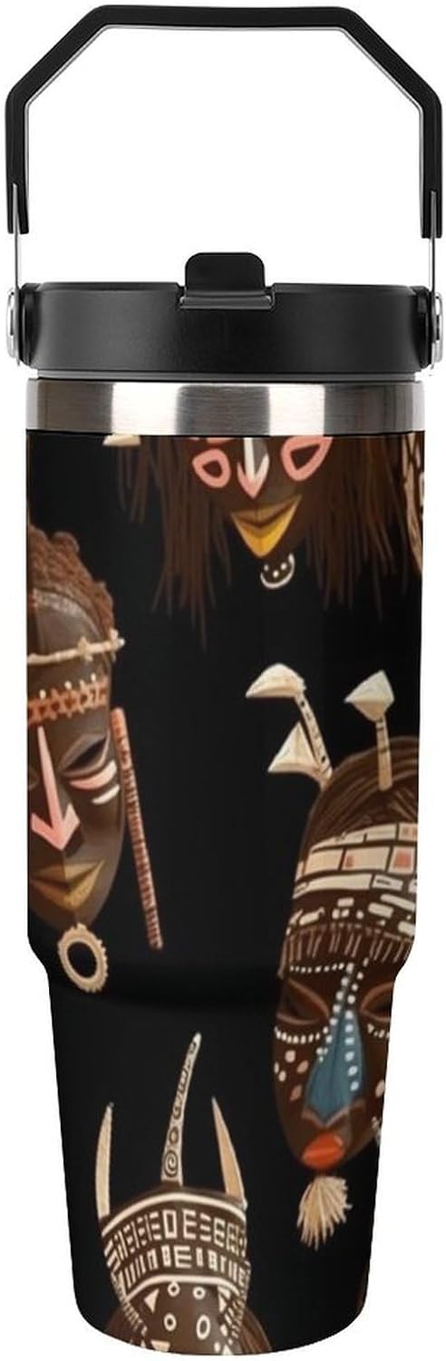 Our African Ritual Ethnic Tribal travel water bottle is made of food-grade stainless steel. The wide mouth design makes it easy to clean and add ice, and the powder-coated exterior is non-slip and durable, ensuring driving safety.Whether you prefer sipping or quenching your thirst, this personalized insulated mug has you covered. Featuring a splash-proof straw design, a sealing ring securely holds the reusable straw, and a drinking spout and full-coverage lid for enhanced leak-proof performance, this mug allows you to easily carry ice water to work, meetings, the gym, or on trips.You can give it to your friends and family as a birthday, Mother's Day, Father's Day, New Year's, Thanksgiving, and holiday gift. It's a thoughtful present.