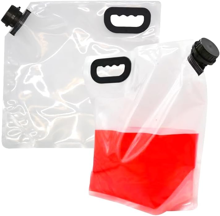 SUPER STRONGE DUAL NYLON LAYER, Built with Non-toxic food grade premium DUAL LAYER NYLON (PA) + PE INNER LINER, this super strong pouch would stand secure seal even under heavy abuse! Fexible material easily fold or store flat taking up little spaceTAMPER-EVIDENT HEAVY DUTY CAP, Single use tamper-evident drink cap lock in beverages under secure seal and preserve freshness. Free from accidental spill or leakage!EXPANDABLE BOTTOM & LARGE MOUTH, Expanded bottom design provide extra containing volume and allow the bag to stand stable on its own. Enlarged mouth opening 1.3" / 33mm provide speed fill and pour. 5 finger wide easy-grip ergonomic handle ensures easy carryingJUMBO VOLUME WIDE APPLICATION, Containing up to 1.3 gallon 5 liter, Great for camping, hiking, backpack, fishing, sports events, parties and restaurant. Great for survival & emergency kits. Store water, milk, tea, juice, alcoholic drinks, soup or sauce, even freezed liquid or dry goods like beans grains coffeeFREEZABLE & REUSABLE, We provide replacement tamper-evident drink caps for you to continue using this great bags, and we save the earth!