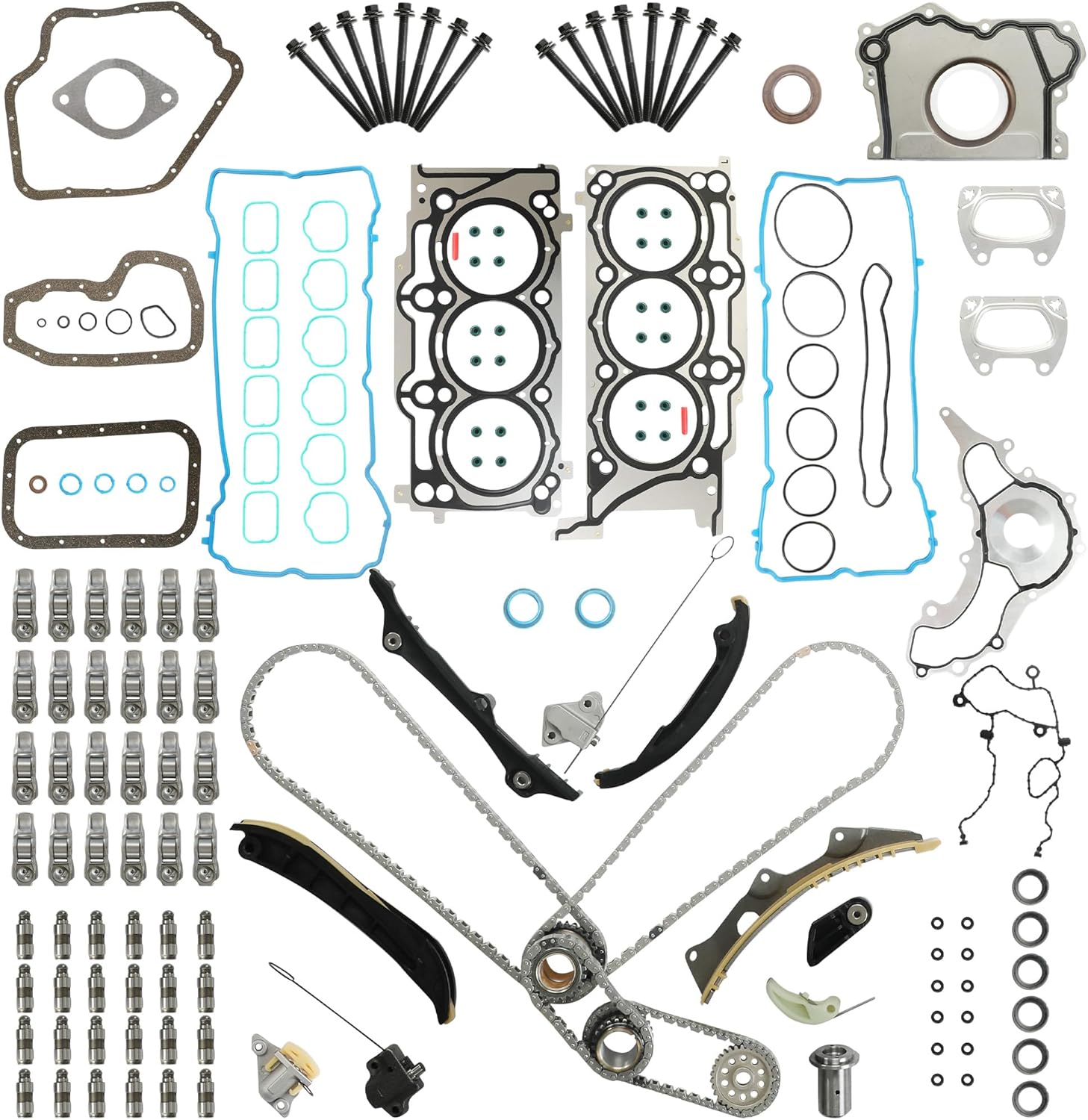[Fitment]: Fit For Chrysler 200 3.6L V6 2011-2014; Fit For Chrysler 300 3.6L V6 2011-2018; Fit For Chrysler Town & Country 3.6L V6 2011-2016; Fit For Dodge Avenger 3.6L V6 2011-2014; Fit For Dodge Challenger 3.6L V6 2011-2017; Fit For Dodge Charger 3.6L V6 2011-2018; Fit For Dodge Durango 3.6L V6 2011-2015; Fit For Dodge Grand Caravan 3.6L V6 2011-2018; Fit For Dodge Journey 3.6L V6 2011-2018; Fit For Jeep Grand Cherokee 3.6L V6 2011-2015; Fit For Ram 1500 3.6L V6 2013-2018; Fit For Ram C/V 3.6L V6 2012-2015; Fit For Ram ProMaster 1500 3.6L V6 2014-2018; Fit For Ram ProMaster 2500 3.6L V6 2014-2018; Fit For Ram ProMaster 3500 3.6L V6 2014-2018; [OE/OEM Number]: Timing Chain Tensioner(Right):5047891AA, 5184391AE, 5184391AF; Timing Chain Guide(Left):5184392AD; Timing Chain Guide(Right):5047791AA, 5184362AD; Timing Chain Guide(Left Upper):5047794AA, 5184361AE; Timing Chain Tensioner(Right Upper):5047794AA, 5184361AE; Timing Chain Tensioner(Left Upper):5047885AA, 5184360AE, 5184360AF; Timing Chain Guide(Tensioner Arm; Right) : 5047790AA, 5184364AD; Timing Chain Guide(Tensioner Arm; Left):5047792AA, 5184363AD, 5184363AE, 5184363AF; Oil Pump Chain Tensioner:5184093AE; Timing Chain:5184355AE, 5184355AF; Timing Chain(Upper):5184352AE, 5184352AF; Oil Pump Chain:5047966AA, 5184278AD, 68312674AA; Oil Pump Set: 5184295AE, 5184295AF, 5184295AG, 68138644AA, 68138644AB, 68252670AA, 68252670AB, 68252670AM, 68252670AN, 68252670AO; Water Pump Set:5184498AD, 5184498AE, 5184498AK, 7B0121011G; [Package Included]: 1xTiming Chain Tensioner(Right); 1xTiming Chain Guide(Left); 1xTiming Chain Guide(Right); 1xTiming Chain Guide(Left Upper); 1xTiming Chain Tensioner(Right Upper); 1xTiming Chain Tensioner(Left Upper); 1xTiming Chain Guide(Tensioner Arm; Right); 1xTiming Chain Guide(Tensioner Arm; Left):; 1xOil Pump Chain Tensione; 1xTiming Chain:5184355AE; 1xTiming Chain(Upper); 1xOil Pump Chain; 1x Water Pump; 1x Oil Pump;