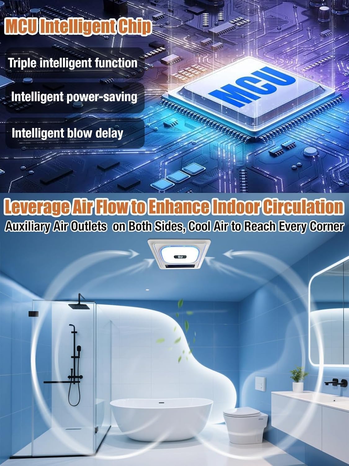 | Special Features | Bathroom Exhaust Fan with bluetooth speaker, Bathroom Exhaust Fan with heater, LED Light, Quiet Operation, Remote Controlled |