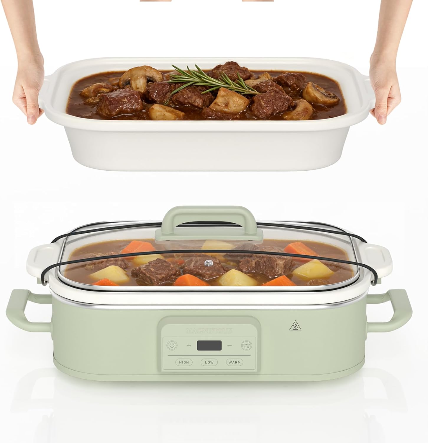 4-Quart Slow Cooker with Casserole Manual Warm Setting - Perfect Kitchen Small Appliance for Family Dinners, Dishwasher Safe Crock, Sage
