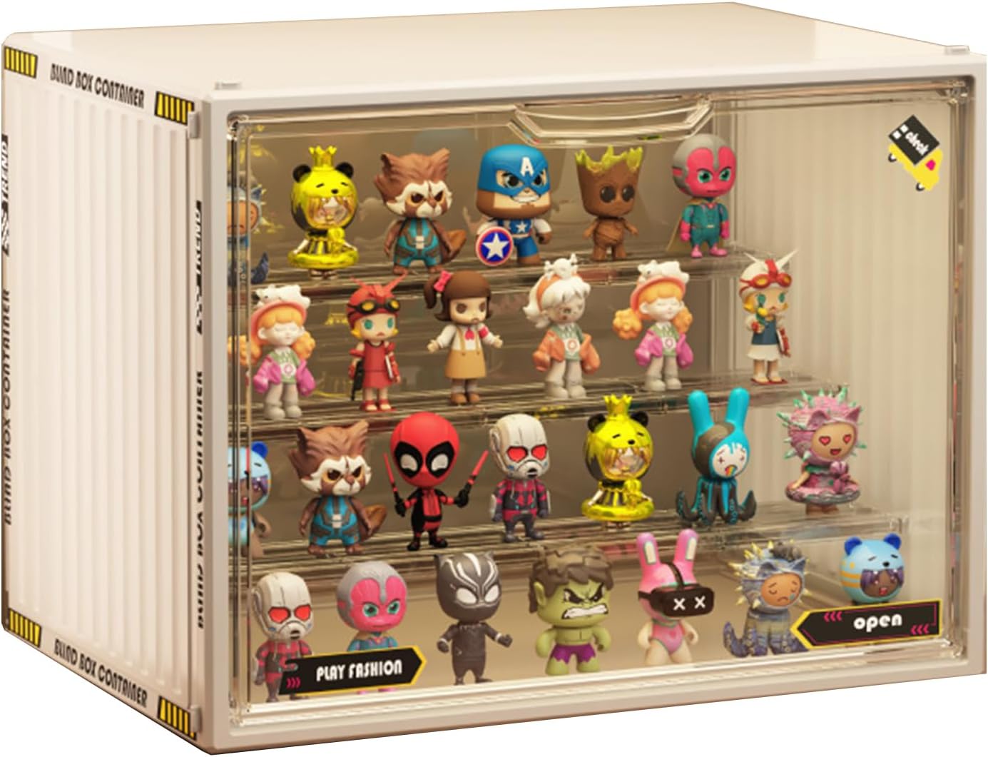 The transparent design of the clear display case Outside Dimensions:L x W x H:14.2" x 8.7" x 10.8" Ultimate Display Solution for Blind Box Collectors Transform your Labubu, Pop Mart, and anime figure collections into museum-quality exhibitions with our 4-Tier Stackable Acrylic Display Case. Designed by collectors for collectors, this clear acrylic display cabinet with magnetic doors combines industrial-strength protection with elegant presentation for Funko Pops, Nendoroids, and limited-edition blind box treasures. Key Features & Benefits: 1,Modular Stackable Design: Create custom displays with vertically stackable acrylic tiers (max 5 units) Space-saving solution for small apartments vs traditional display cabinets Interlocking grooves ensure perfect alignment and zero wobbling 2,Collector-Grade Protection: 3mm thickened acrylic walls – 2X thicker than standard display cases UV-resistant coating prevents yellowing and discoloration Hermetic magnetic seal blocks 99% dust and humidity 3,Smart Functional Engineering: Neodymium magnet doors – silent 1-finger access vs noisy latches Adjustable shelf heights (2.5"-5.5") fit 6" Labubu to 12" scale figures 4,Premium User Experience: Tool-free assembly in 5 mins – no glue/screws required Included microfiber gloves & anti-static cloth for crystal-clear maintenance