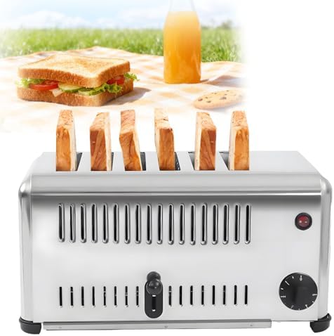 Introducing our Commercial Toaster, designed for efficiency and reliability in busy kitchens. With options for 4 or 6 slots, this stainless steel countertop toaster is perfect for cafes, restaurants, and bakeries, enabling you to toast multiple slices simultaneously to meet high-demand service. Crafted from durable stainless steel, our toaster is not only built to withstand heavy use but also adds a sleek look to your kitchen. It features 5 adjustable settings, allowing you to customize toasting levels to suit a variety of bread types—from bagels to artisanal loaves—ensuring perfectly toasted results every time. With a voltage range of AC110V/220V and a power output of 2.24KW for the 4-slot model and 3.24KW for the 6-slot, this toaster is equipped to handle the demands of a commercial environment. The timing range of 1-5 minutes ensures consistent performance, making it an invaluable tool for busy mornings or catering events. Safety is a priority; the toaster heats up efficiently, so please handle with care and avoid touching the metal surfaces during operation. With a power cord length of 1.5m, you can position it conveniently on your countertop without hassle. Whether you're serving breakfast, lunch, or snacks, our Commercial Toaster is the perfect addition to your kitchen equipment. Upgrade your toasting experience and impress your customers with perfectly golden slices every time. Order yours today and elevate your food service!