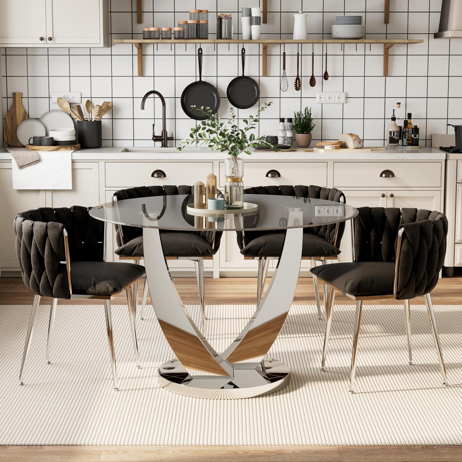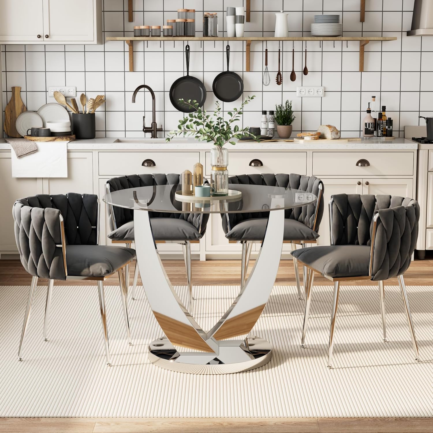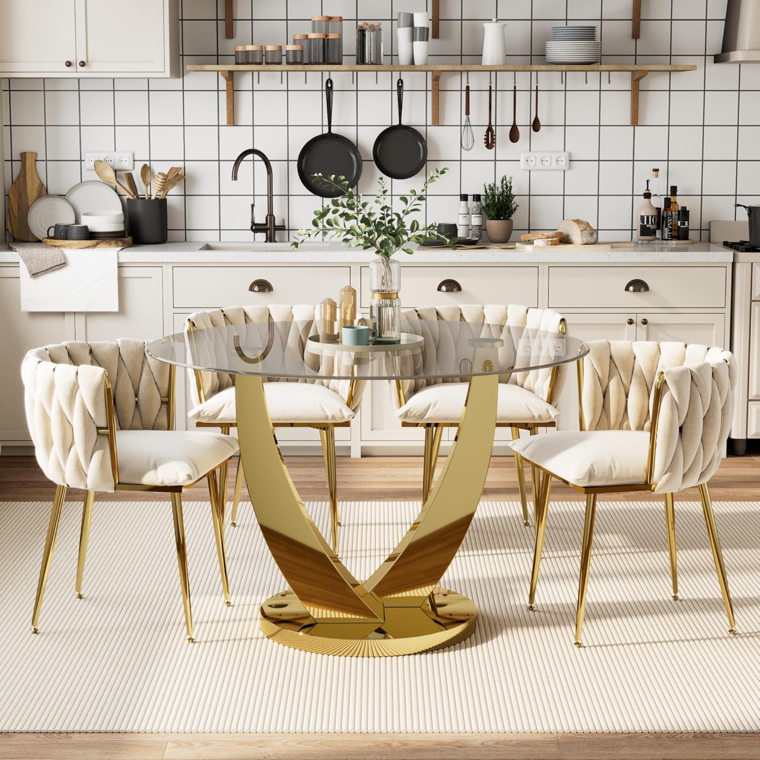 | Color | Transparent Silver Pedestal Table + Beige Chair |
