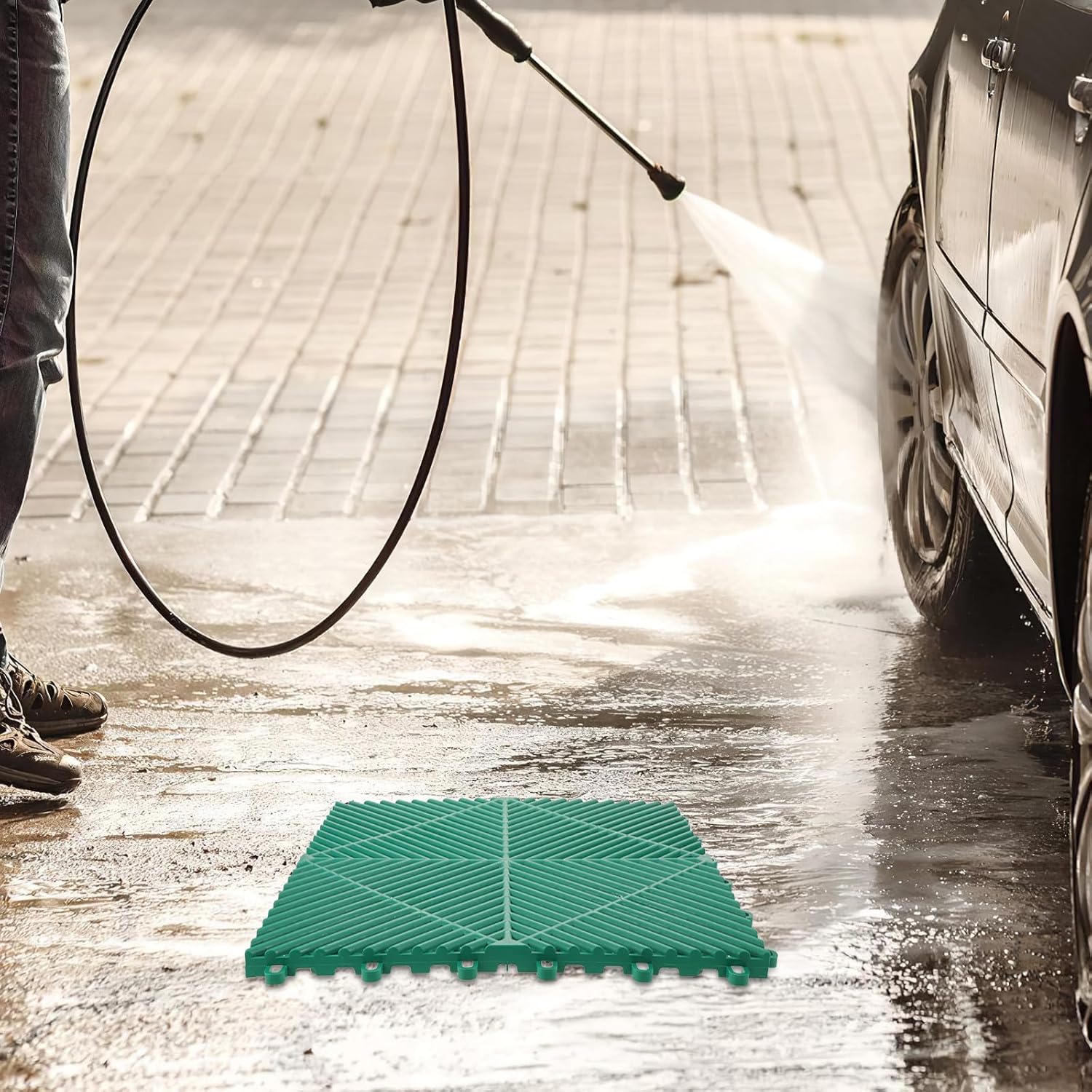 Description Engineered with advanced high-impact materials, these balcony waterproof tiles are perfectly suited for use in wet area floor mats and heavy-duty garage tiles. Their robust and modular interlocking design ensures reliable drainage, keeping your workspace hygienic and slip-free. The unique grid pattern prevents tire skidding, making them ideal for such as car washing stations or indoor flooring tiles. Features -Color:Green -Material:PP -Size:40.00X40.00X1.70cm/15.72X15.72X0.67in -Efficient drainage system: our garage floor tiles feature a high-performance interlocking drain mat design, enabling rapid water removal for a consistently dry and wash environment -Durable heavy-duty material: built with abrasion-resistant material, these modular garage flooring tiles withstand high-impact loads, ensuring a sturdy solution for busy wash bays -Nonslip grid structure: the balcony drain tiles utilize an advanced grid pattern that prevents vehicle tires from slipping, greatly increasing safety during wet cleaning operations -Flexible modular design: modular interlocking tiles can be easily spliced together, adapting to any car wash area and supporting quick installation or custom reconfiguration as needed -Easy maintenance: the self-draining mats minimize residue accumulation, making cleaning effortless and helping maintain the hygiene of your garage, workshop, or outdoor balcony