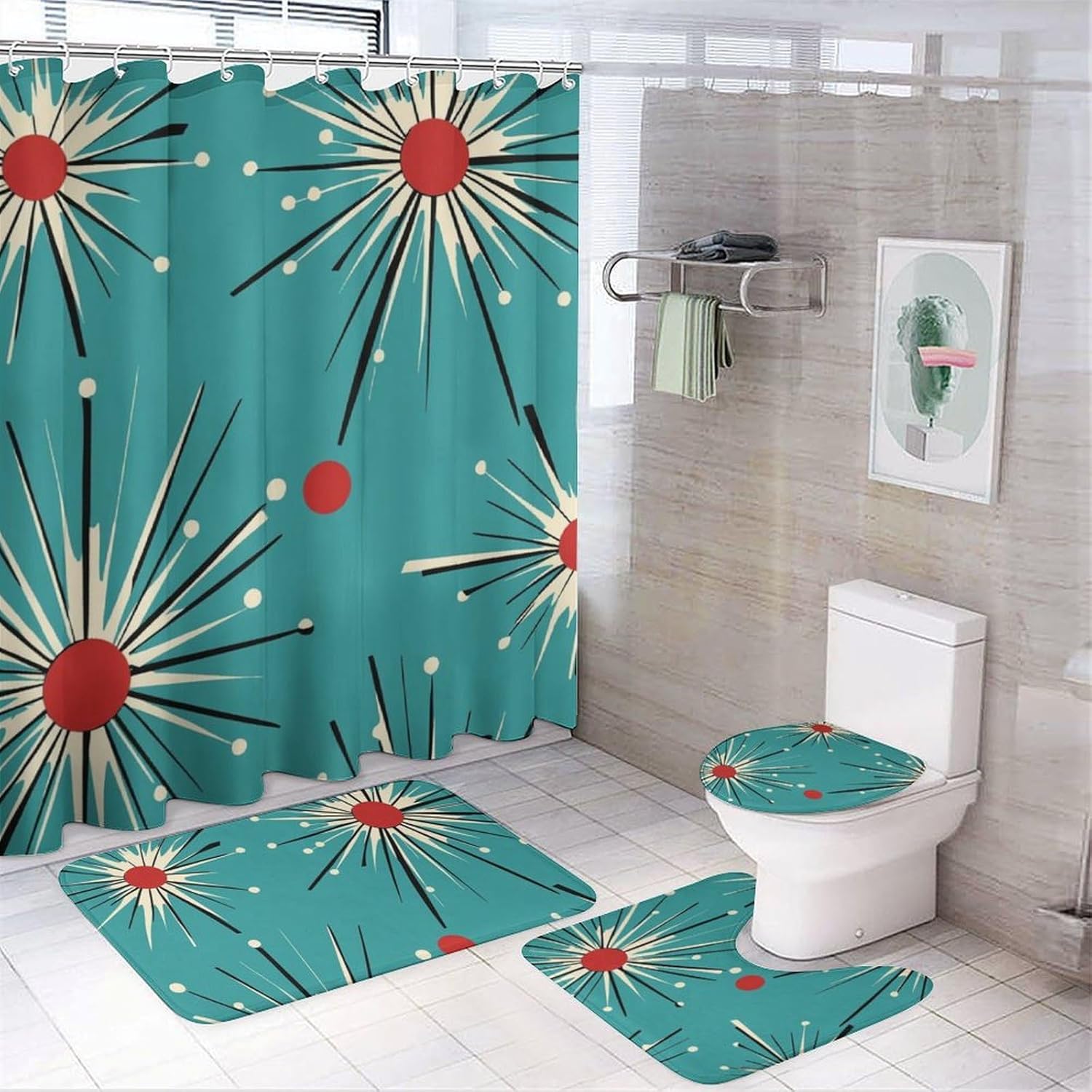 We are committed to creating a better bathroom and a warmer home for youA better home and a better life are our eternal goals. We believe that your bathroom should be a place of comfort and relaxation, a sanctuary where you can unwind and rejuvenate after a long day.Our shower curtains not only can bring you a different visual experience, but also bring a warm feeling to your bathroom. Taking a bath in the bathroom is like entering the world of shower curtain patterns, which can wash away the fatigue and troubles of the day.Shower curtain sets create a comfortable bathroom experience. It is also a modern art decoration for your interior space. Waterproof Polyester Fabric, 100% premium polyester with strong ability of waterproof, dries quickly after the water drops flow. When you take a shower which can prevent it from splashing, keep the bathroom floor dry and clean.Warm TipsIt's OK for machine wash, hand wash or wiped by damp cloth.Wash the shower curtain in water below 30℃, Ironing within 100℃.Do not tumble dry, dry clean, or bleach.Please allow a deviation of 1-2cm due to manual measurement.Due to the different display settings of the computer, the colors may be slightly different.