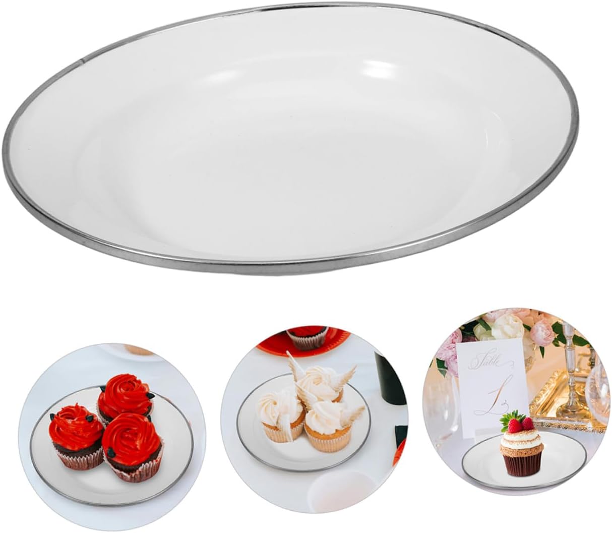 Package Include 4 x enamel plates Characteristics -Material:Enamel -Size:22.00X22.00X3.00cm/8.65X8.65X1.18in -Color:White -Product Info:Enamel disc -This set of enamel plates features a vintage design, great for adding a retro touch to any setting retro style fruits plates. -With meticulous craftsmanship, these plates boast a smooth surface that provides a delightful tactile experience for users dinner plate fruit plate. -Compact and portable, these trays are easy to carry and store, making them good for use at home, in restaurants, or in cafe bread plate. -The versatile design of these plates makes them ideal for serving a variety of foods, from snacks and fruits to desserts, meeting diverse needs vintage enamel plates. -Crafted from thick enamel, these plates are not only but also easy to clean, ensuring they last for years plate.Goods Informationdecorative plate Practical enamel plate, this plate is definitely a plate.appetizer plate Retro style and decorative, suitable for home, hotel, kitchen, restaurant, etc.serving plate With smooth edges, use it to serve for snacks, fruits, candy, etc.food plate You can use it at home, outdoor camping