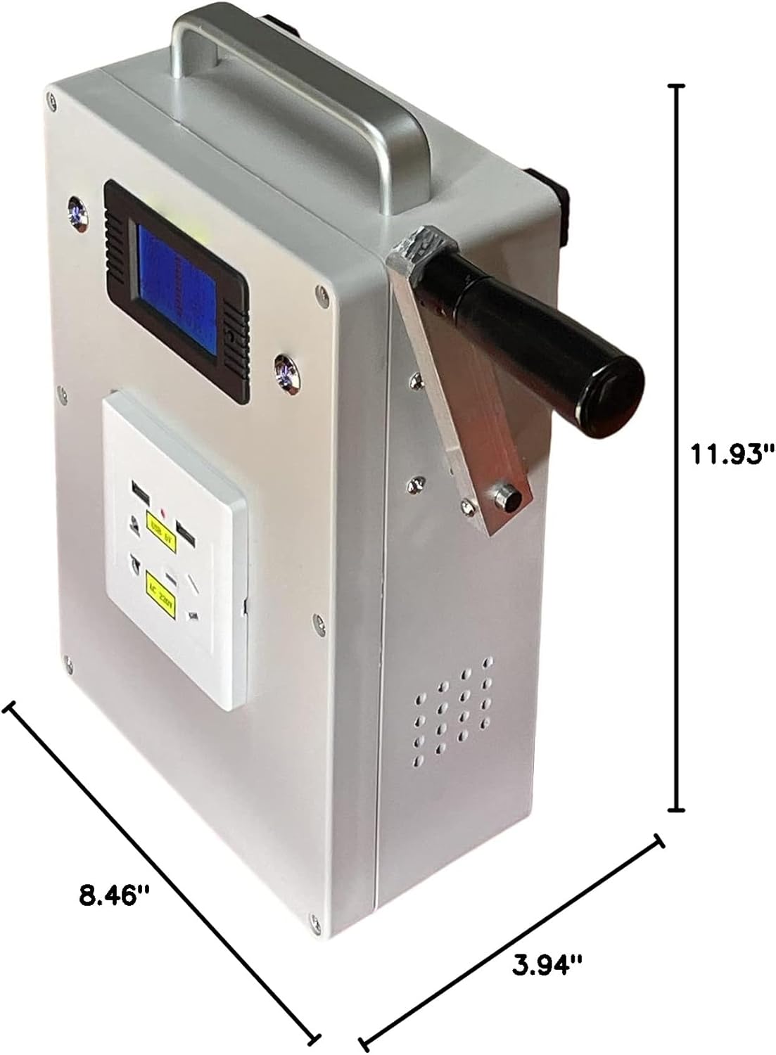 Product parametersGenerator Type: All Steel DC Brush GeneratorGenerator power: 5-50W (generating power is related to hand cranking speed, maximum 50W)Generating current: 1-4.5A (generating current is related to hand cranking speed, maximum 4.5A)Multi-function electricity meter: real-time display of power generation current, power generation power, built-in battery power, etc.Built-in battery type: 18650 power lithium battery pack, long life, replaceableBuilt-in battery capacity: 260wh (equivalent to 5V 62400mah), 200wh (equivalent to 5V 46800mah)USB 5v: 5v/2.1A x 2DC 12V: The DC 12V output is the same as the charging port, the polarity of the power supply is positive inside and negative outsideAC 220V: 500W (modified sine wave)Charging method: hand-cranked power generation, charger, solar panel (you need to purchase the voltage to match the solar panel), etc.Product weight: 3.42kgProduct size: 303x215x100mm