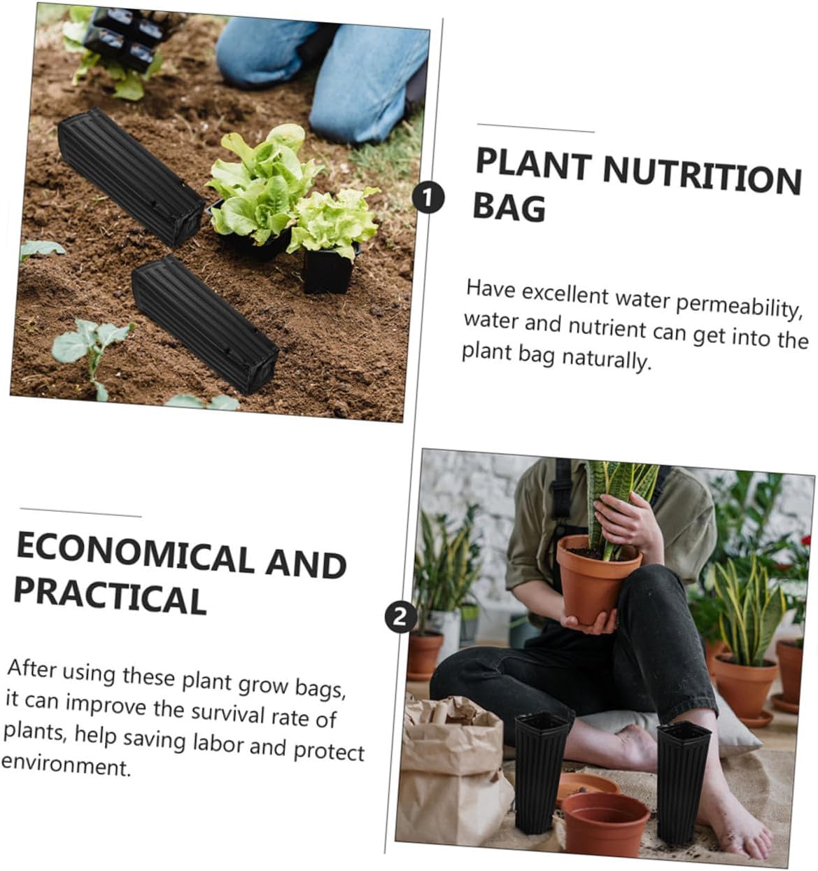 Package List Nursery Bags Features -Material: Plastic. -Product Info:Seedling bag - Adopted of premium plastic material, durable and practical for use. - Can retain water, prevent fertilizer from flowing out, and better protect the plants seed grow bag. - The bottom of each planting bag has a small hole design, the root can absorb fresh air well, and promote the root development garden plastic planting bags. - Nursery grow bags can be planted directly into the ground and garden Fruit Nursery Bags. - Round edges and smooth surface, safe to touch and do not hurt your hands seedling pot bag.Goods Descriptiongrow bag for trees They are excellent breeding tool.Plastic Gardening Vegetable Pouches The excellent production process makes them have high toughness and wear resistance, and will not be easily damaged.planting container bags These planting bags, are safe and durable for long time use, which can help to maintain crops alive.breathable planting bags They can be placed in gardens, balconies, farms and other places
