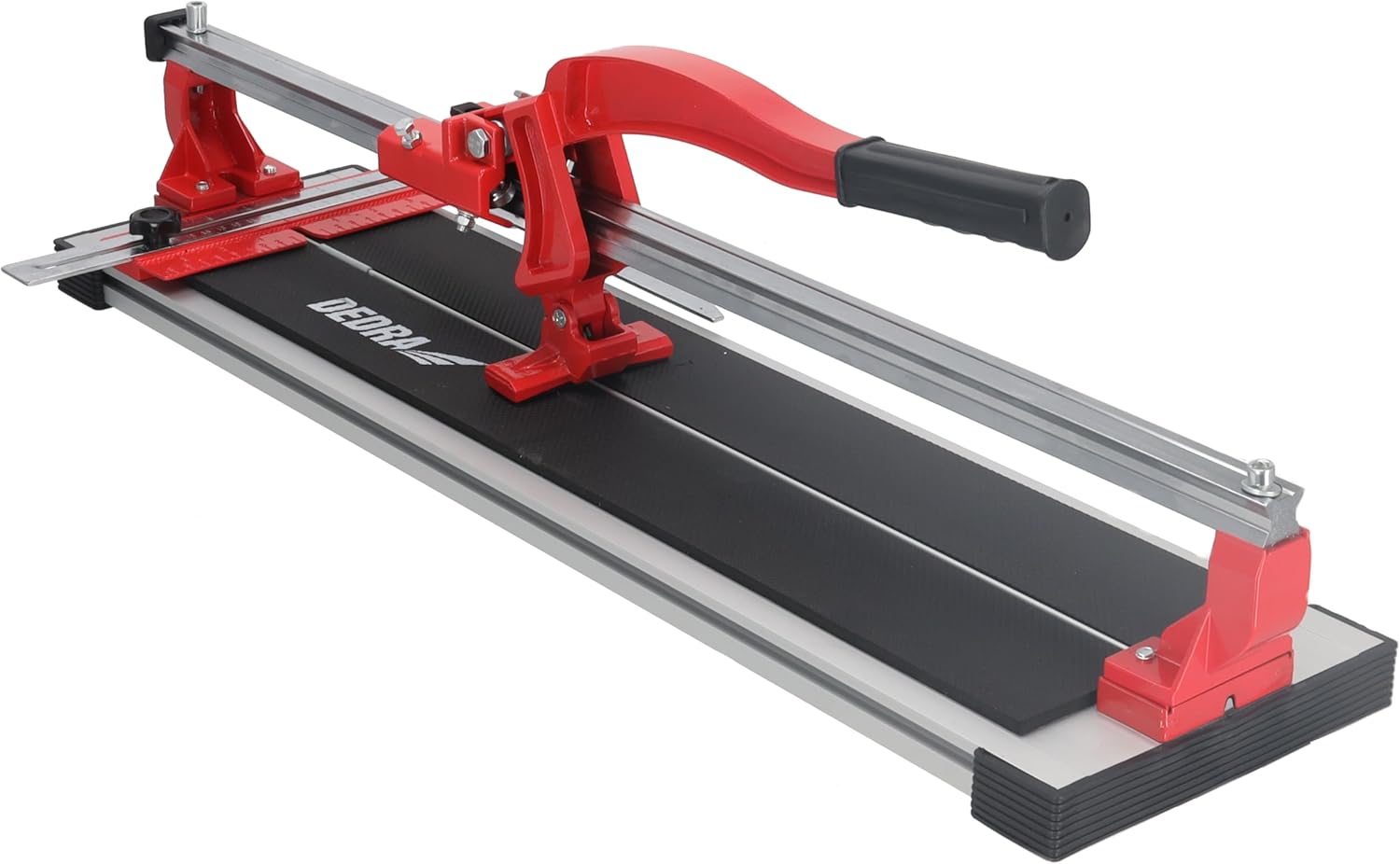 Dedra 1152 Tile Cutter - Precision and performance for demanding tile jobs. The Dedra 1152 tile cutting machine is designed for DIY enthusiasts and professionals who value clean, precise and fast cuts. This robust device is ideal for cutting ceramic tiles, porcelain stoneware and other common materials. The DEDRA 1152 manual tile cutter is a reliable tool for cutting tiles and terracotta, ideal for DIY enthusiasts and professionals. With this device, simple to medium duty tile work can be carried out quickly and precisely. The cutting wheel runs on ball bearing guides and in combination with the effective breaking device ensures clean, precise cuts. The sturdy guide rail made of high-quality steel with X-profile ensures maximum durability and cutting accuracy. The chassis is made of durable, lightweight aluminium, which makes handling particularly comfortable without sacrificing stability. Whether renovation or new construction, the DEDRA 1152 is the perfect companion for precise cuts and professional results. Technical data of the tile cutter: • Cutting length: 800 mm • Diagonal cutting length: 565 mm x 565 mm • Maximum tile thickness: 15 mm • Try angle: 22 mm • Weight: 10.25 kg.