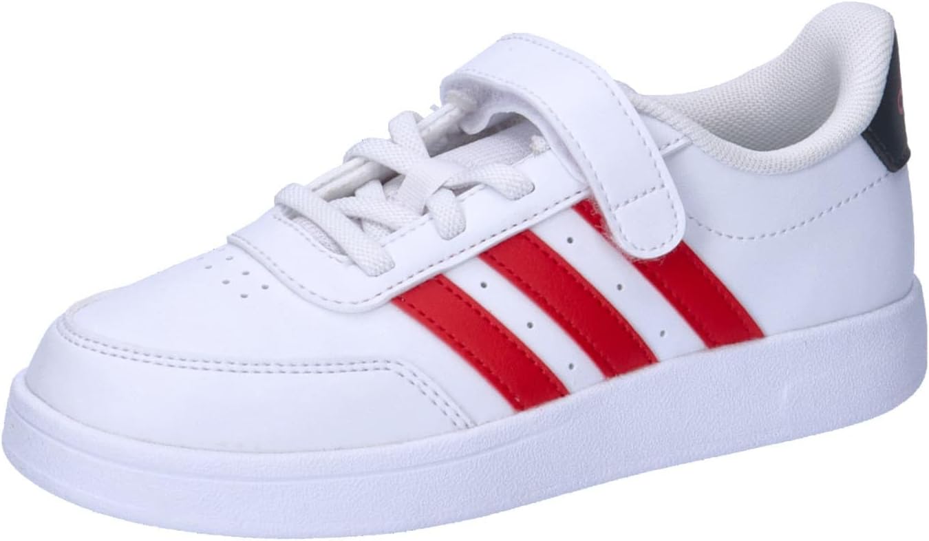 Introducing the Breaknet 2.0 for kids, a modern classic reinvented for everyday play and urban style. Made with recycled PU leather, these shoes are not only durable but also planet-friendly. The elastic lace-up closure and top strap ensure a secure fit, while the rubber outsole offers excellent traction. With a focus on comfort and sustainability, these shoes are perfect for young explorers on the go. FEATURES: - Kids move freely in these lightweight sneakers. - A flexible rubber outsole provides the grip and durability kids need to spend hours on the playground or tennis court. - These kids' adidas sneakers slip on easily thanks to elastic laces, while a hook-and-loop top strap secures the fit. - Let the fun begin. - Regular fit - Elastic laces with Velcro top strap - Textile and synthetic upper. - Textile lining. - Rubber sole