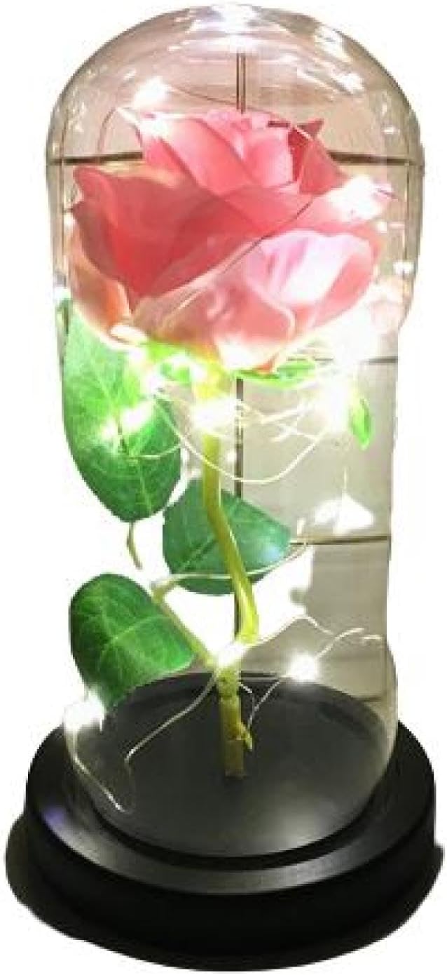Description: Material: silk flowerCraft: handmadeVariety: RoseSuitable for gift-giving occasions birthday, full moon, travel commemoration, graduation, housewarming, party gathering, visits and condolencesProduct size: height 22cm*11cm base diameterInner box packing size: 27*14*14cmProduct power supply: the battery box model uses 3 AAA batteries, sold without batteriesPackaging information: The product is fabric artificial flower, the cover is made of glass, the base is made of wood, the packaging is fully wrapped with foam, and the outer packaging is also provided with a cartonRemarks: The filament needs to be wound by itself