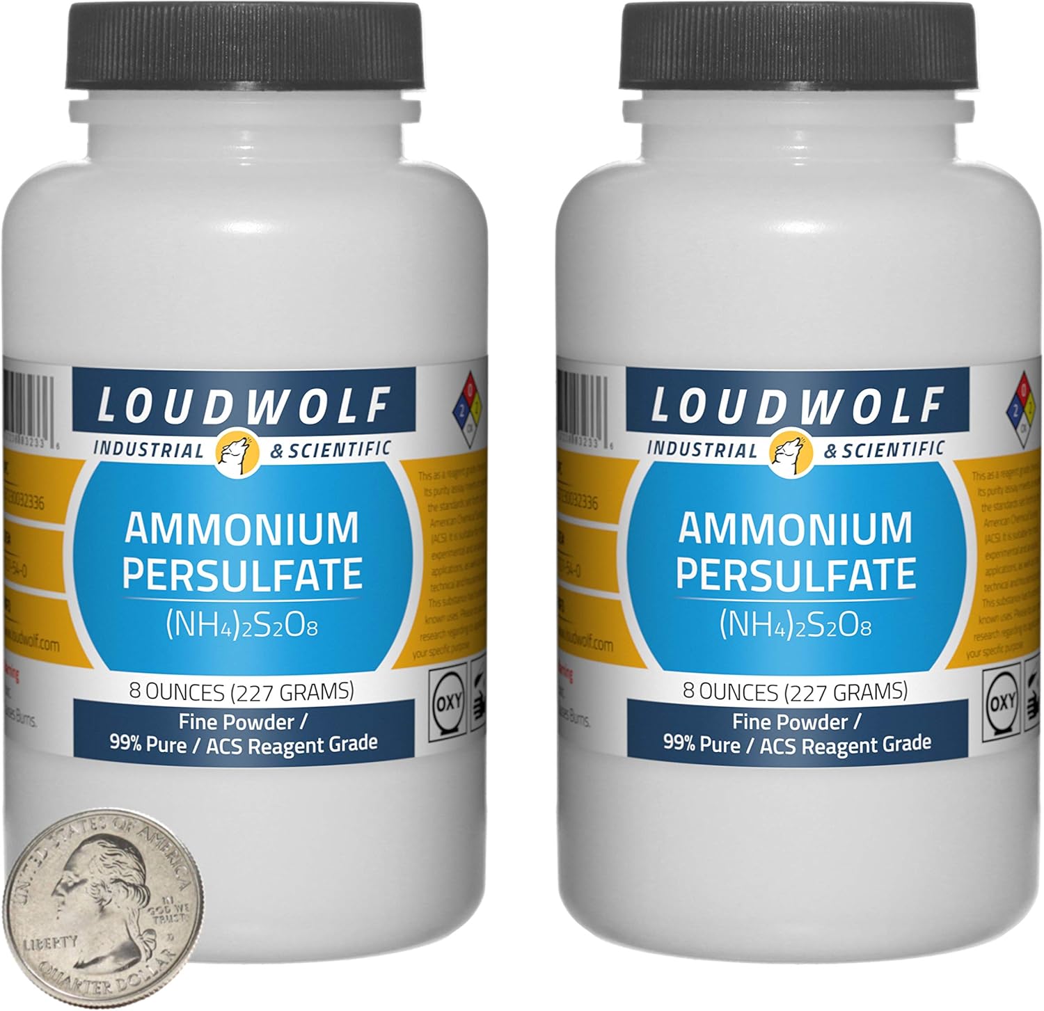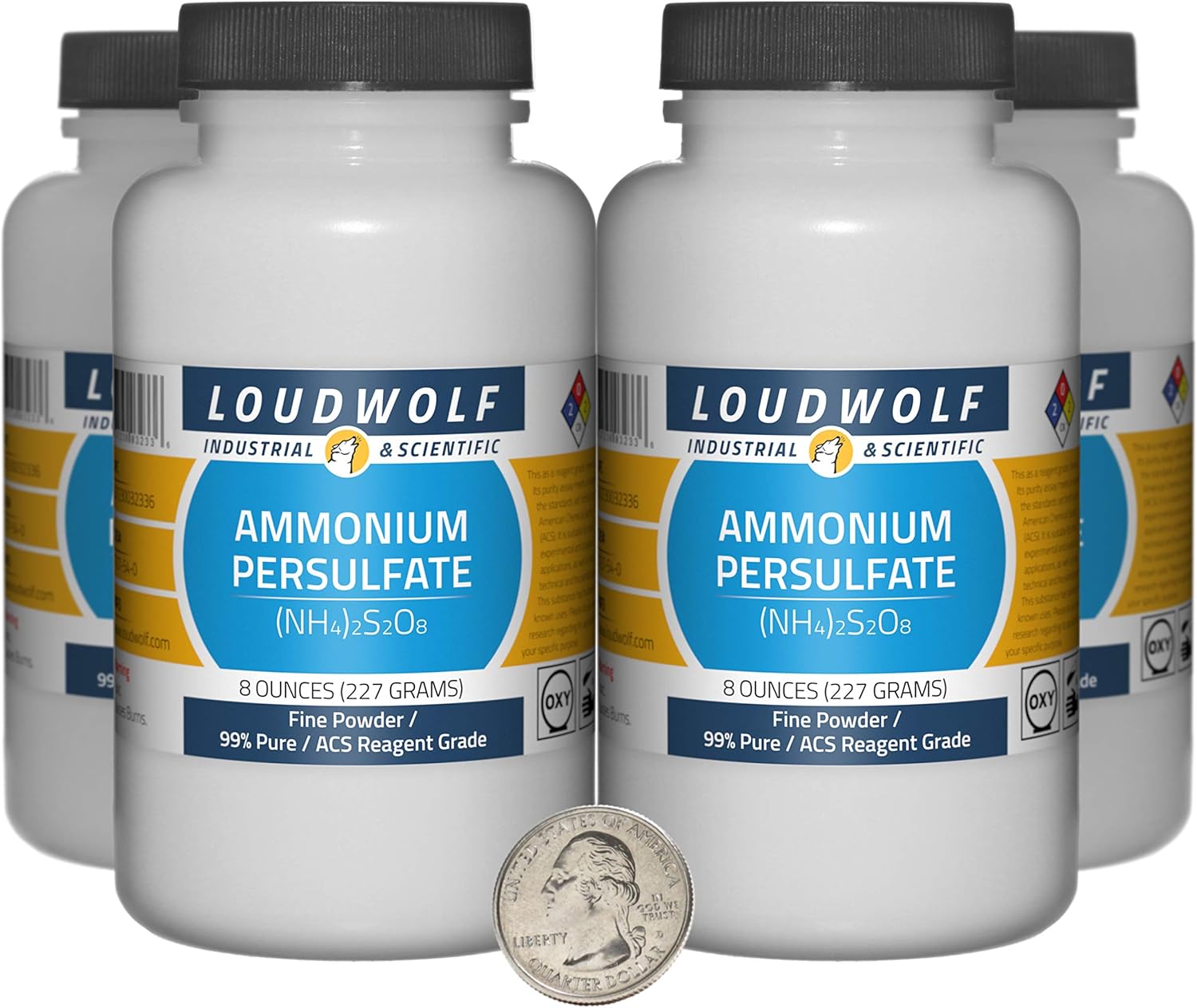 The item for sale is 1.9 Lb (30 Ounces) of Ammonium Persulfate ((NH4)2S2O8). The item is in 3 bottles each containing 10 ounces of product. Ammonium Persulfate is an inorganic, highly water-soluble compound that is commonly used as an etchant or bleaching agent. Bottles are made of durable Polypropylene Plastic, which is a natural, translucent, lightweight, durable, and chemically resistant copolymer. The screw-top is completely leakproof. Bottle is sealed in plastic with the screw-top shrink-wrapped. HUNDREDS OF USES INCLUDING: PCB Etchant / Hair Bleach / Glassware Cleaner / Blot Gel / Polyacrylamide Gel Catalyst.