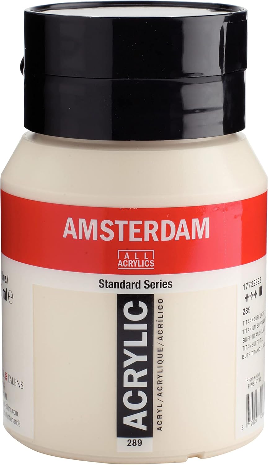 Our acrylics are skillfully made based on a 100% acrylic emulsion and high-quality pigments. They are practically odorless and even in thick layers, the satin paint film remains flexible and prevents cracking. The creamy medium viscosity keeps the brush strokes and textures, but can also be used for easier smooth coverage. Titanium Buff Deep (290) is an opaque color with an excellent lightfastness (+++).
