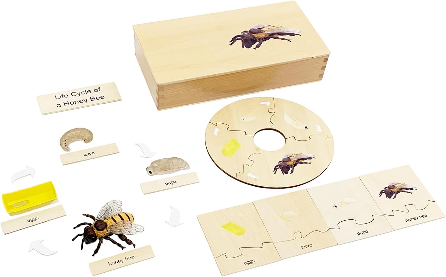 Discover the fascinating metamorphosis of butterflies with this beautifully crafted wooden educational set. The comprehensive kit includes detailed puzzle pieces that illustrate each stage of a butterfly's life cycle - from egg to caterpillar, chrysalis, and finally the majestic adult butterfly. The set comes in a sturdy wooden box with an elegant butterfly design on the lid, perfect for storage and organization. The circular puzzle layout and accompanying linear sequence help children understand the continuous nature of life cycles while developing their fine motor skills and logical thinking. Each piece is made from quality wood with clear, realistic illustrations that make learning engaging and memorable. The set includes labeled pieces to reinforce vocabulary learning, making it an excellent teaching tool for classrooms or home learning environments. This hands-on learning resource brings science to life for young minds while providing hours of educational entertainment. Perfect for elementary school students and nature enthusiasts alike, this kit makes learning about insect metamorphosis both fun and interactive.