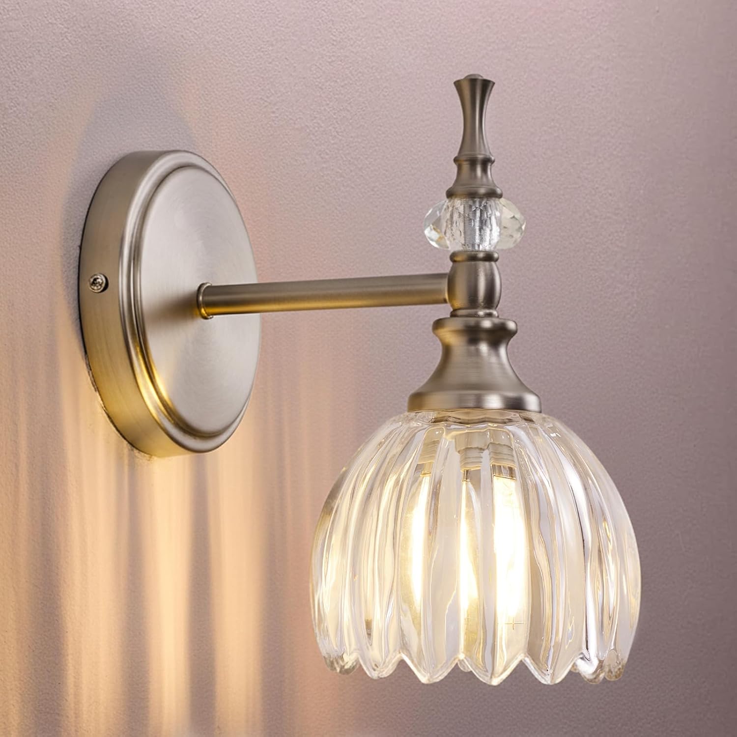 | Other Special Features of the Product | E12 base, brushed nickel finish, hardwired install, sturdy metal construction, tulip-shaped glass shade |