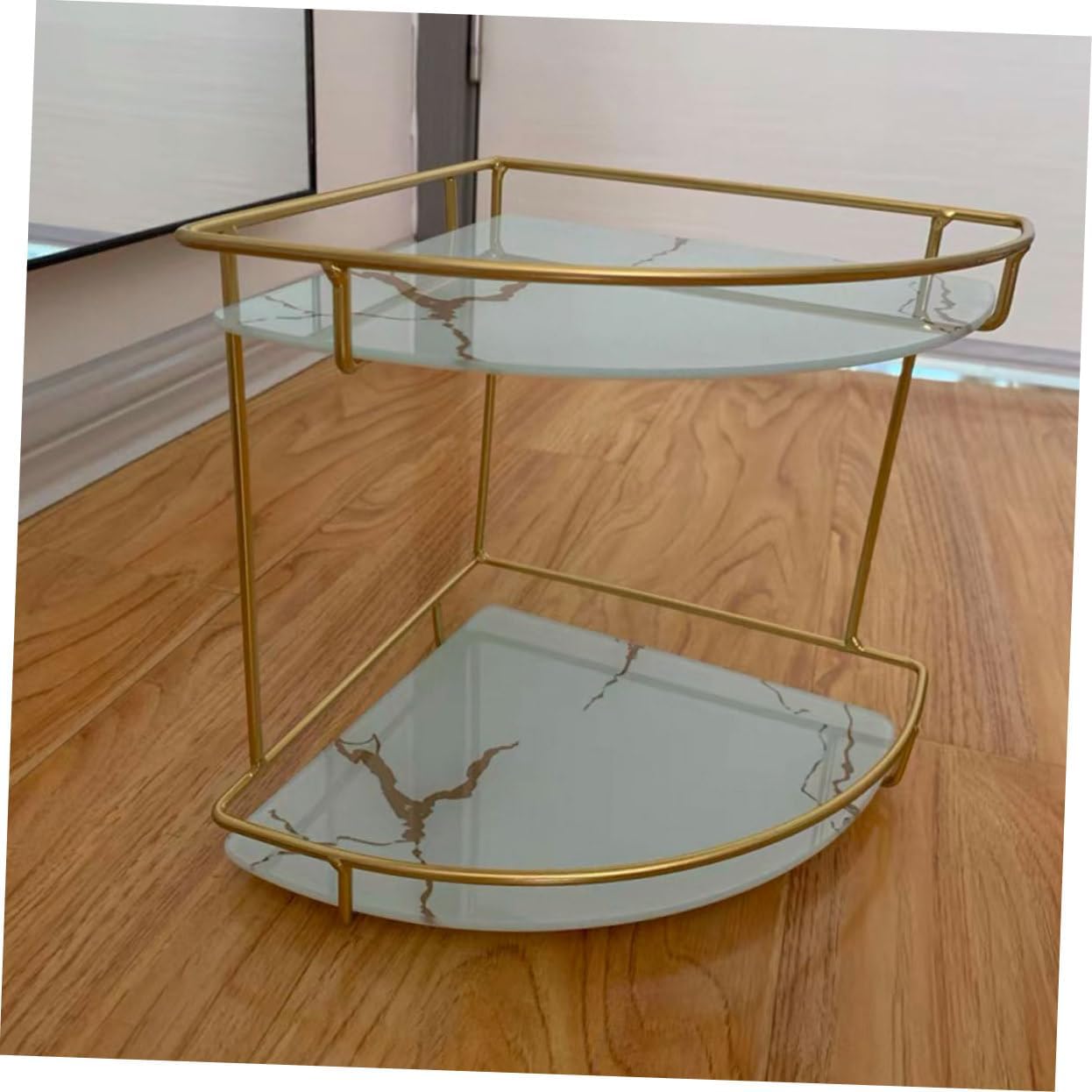 Package Include 1 × Corner Shelf Characteristics - Color: Golden Corner Storage Rack - Material: Iron, glass Bathroom Corner Rack - Size: 30.00X23.50X22.00cm/11.79X9.24X8.65in Corner Storage Shelf - Double-layers design, there is enough capacity to store and organize your belongings and keep them safer Wash Table Corner Rack. - Fine workmanship, good texture, smooth hand touching feel, more and safer to use Toiletry Storage Holder. - You can place this shelf on the desktop stably, convenient for storage, making your bathroom or bedside table more tidy Cosmetics Storage Holder. - In adoption of , this storage shelf is firm and sturdy, can support Toilet Storage Rack. - Can be widely applied to kitchen, bedroom, bathroom and more scenes, perfect storage rack and also decor for your home Shower Corner Rack.Goods InformationKitchen Storage Shelf This is a and sturdy sundries shelf, mainly in adoption of iron and glass material, convenient and can serve you long period.Shower Accessories Good workmanship, reasonable double-layers design, can easily help you to store your sundries like keys, cosmetics and jewelries, make your place more tidy and bring your home a