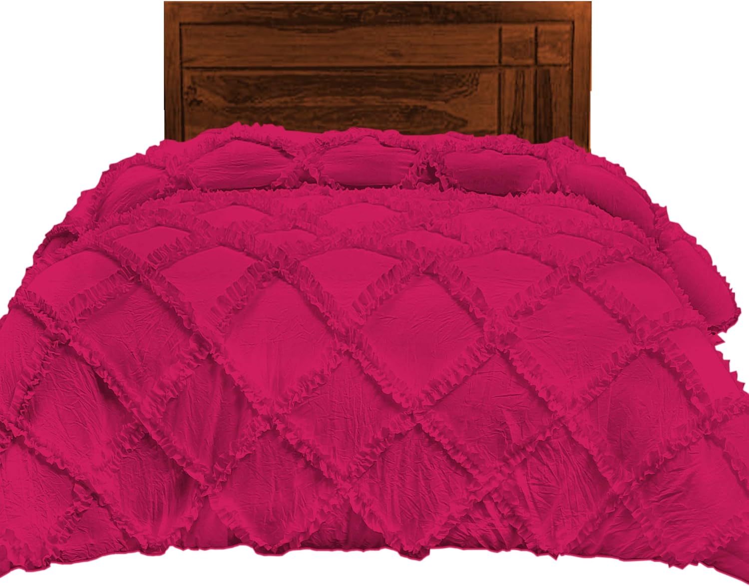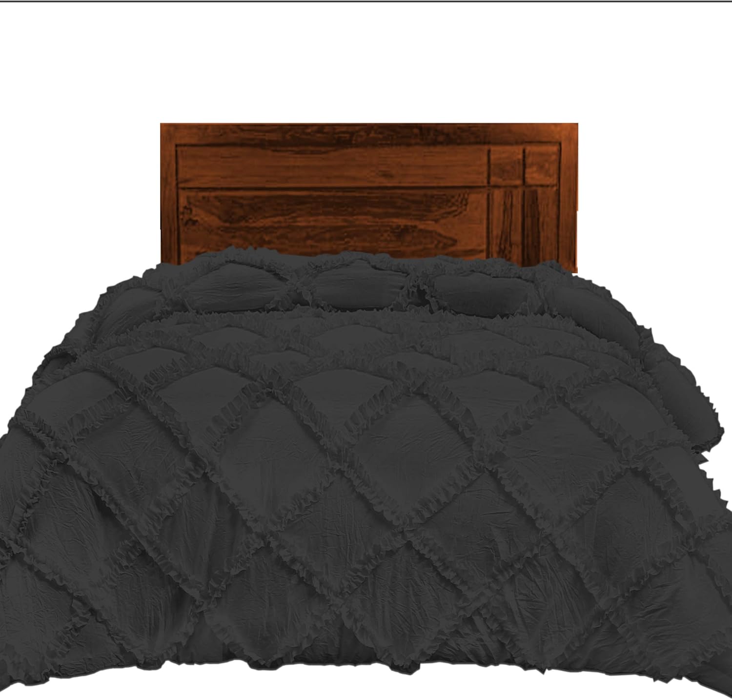 Discover luxury with this Diamond Ruffle DESIGN Duvet Cover Set that provides lasting vibrancy of color no matter how often it is washed and is made of high strength Egyptian Cotton that will stay soft for years. Also, no more fading colors and lint bubbles on your favorite duvet cover. The duvet cover stands out with its eye-catching Diamond Ruffle DESIGN while remaining understated with a neutral hue.