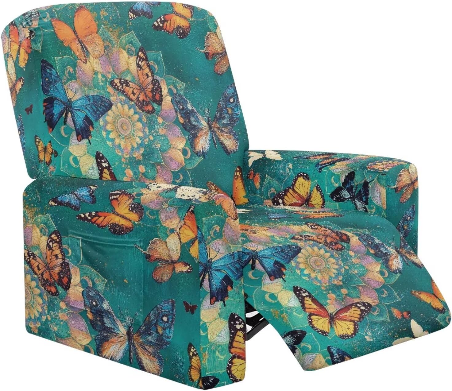 Size:Fits recliners with a width between 23 and 35 inches. Please refer to the product size chart for exact dimensions and to confirm fit High-Elastic Fabric: Crafted from a premium blend of polyester and spandex, this recliner cover offers exceptional stretch and recovery. Its high elasticity ensures a snug, custom-like fit on most recliner shapes without sagging or slipping. Plus, the soft and breathable fabric provides lasting comfort for everyday use Child & Pet Friendly:Crafted from soft, breathable fabric provides a good touch for children and pets. This durable cover resists scratches and snags, while its easy-clean surface handles spills and pet hair effortlessly. Provides a cozy spot for your loved ones Diverse & Stylish Patterns: Explore our collection of chic designs, including marble, sunflowers, starry sky, and more! Find the perfect pattern to express your unique style, instantly refresh your living space, or gift a stunning upgrade to friends and family. Transform your recliner and your room effortlessly Complete 360° Protection: This 4-piece recliner cover set is meticulously designed to shield every part of your chair – seat, back, arms, and sides. Defend against spills, stains, pet hair, scratches, and everyday wear and tear to preserve your recliner's look and extend its lifespan Note: Due to variations in lighting and monitor display settings, the color you see on your screen may differ slightly from the actual product Because of different measurement methods,please allow 1-2 cm error