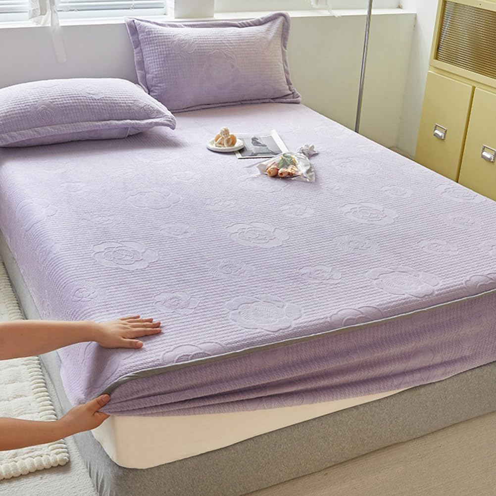 The cold winter is coming soonYou need a warm and comfortable mattress coverThis milk velvet mattress cover is very suitable for use in winterLet you have a peaceful sleepFabric: Milk velvet fabricFeatures:warm dustproofPrinting and dyeing process: reactive printing and dyeingWhether it can be machine washed: Can be machine washedCan accommodate mattress thickness: within 25cmColor:beigeA,beigeB,blue,purpleSize:120x200cm(47*79in)150x200cm(59*79in)180x200cm(71*79in)200x220cm(79*87in)Package includes:Mattress protector*1 (pillowcase not included)notes:1. Please allow 1-3cm error due to manual measurement.2. Due to different monitors, there may be slight color differences. We hope you can understand.