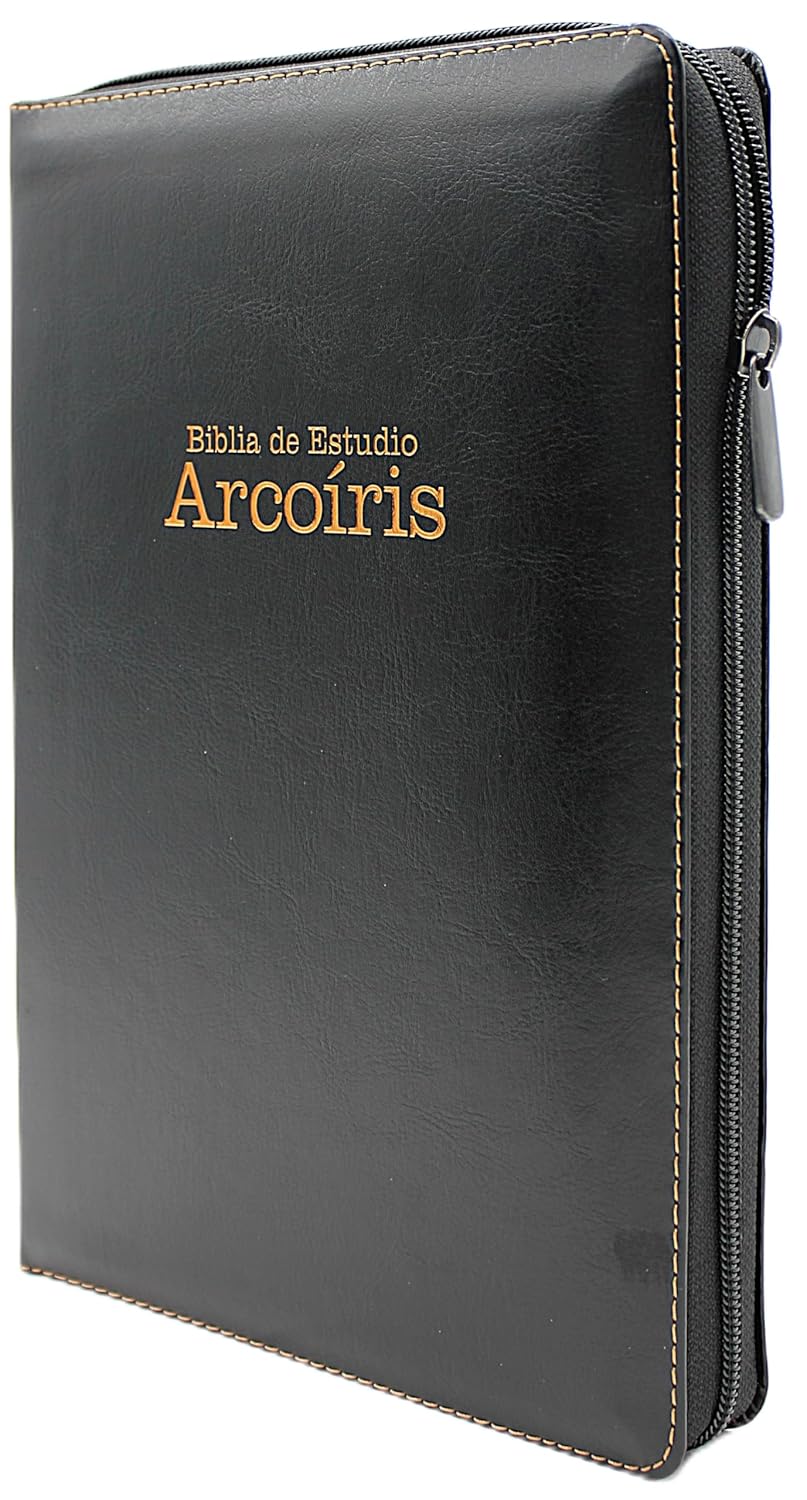 Nueva Biblia de Estudio Arco Iris con Letra grande/gigante de 16 pts en traduccion Reina Valera 1960 con cierre, Indice, hecha en senti cuero en color negro y estuche de proteccion para guardar y proteger la Biblia Edicion Especial de 16 puntosLa Biblia de Estudio Arco Iris RVR 1960 Edicion Coleccion Celestial viene en su nuevo diseno de foro hecho de semil piel en color caoba y esquina de color cobre con cierre y estuche de proteccion disenado para ayudar a proteger la Biblia. Tambien esta hecha usando los mejores materiales posibles incluyendo el papel pegado a la Bibla y al foro que esta compuesto con una capa especial para que sea mas resistente.Incluye:Biblia de Estudio Arco Iris Reina Valera 1960 en su propio color de acuerdo con 12 temas claveReferencia en la columna centralMapas a lo largo del textoGlosarioConcordanciaCalendario para lectura biblica diariaRainbow Study Bible with Reina-Valera 1960 version with easy to read 16 point print, indexed, leather soft with Zipper in SpanishThe Holman Rainbow Study Bible has a unique color-coding system that allows the readers to quickly and easily identify twelve major themes on Scripture throughout the text. God, love, discipleship, faith, sin , evil, salvation, family, outreach, commandments, history and prophecy. Features: All verses color-coded to easily identify 12 major Biblical themes, words of the Trinity underlined for added emphasis.In addition this version includes:Rainbow Study Bible with color coded to easily identify 12 major Biblical themesGlossaryReferencesFull-Color MapsCalendar with daily bible lectures Read more