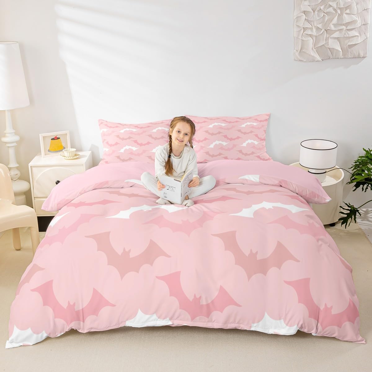 Package Include: Duvet Cover, Pillowcase; High-end Duvet Cover Set Pattern Bedding Set,simply decorating your rooms any time you want, bringing you fresh feel for year round use;Long-lasting:;Made from 100% polyester microfiber,the sheet set offers long-lasting strength, anatural resistance to shrinking and a noticeably soft hand feel;;Size Information::;Twin size : 2 Piece duvet cover set : 1 Duvet Cover 68" x 90",173 x 228 cm , 1 pillowcase 20" x 30",51x75 cm ;Without Comforter;Full size : 3 Piece duvet cover set : 1 Duvet Cover 80" x 90",200 x 229 cm , 2 pillowcase 20" x 30",51 x 75 cm ;Without Comforter;Queen size : 3 Piece duvet cover set : 1 Duvet Cover 90" x 90",229 x 229 cm , 2 pillowcase 20" x 30",51 x 75 cm ;Without Comforter;King size : 3 Piece duvet cover set : 1 Duvet Cover 104" x 90",264 x 229 cm , 2 pillowcase 20" x 36",51 x 92 cm ;Without Comforter;Personalize your bedroom:Beautiful design and colorful print, makes your bedroom unique and brings you a wonderful dream;Washing instructionsMachine wash separately in cold water,hang dry, do not bleach;Occasion:The cute soft duvet cover bedding sets designed for Children ,Adult, Men, Women, Teens; This duvet cover set is also suitable for full seasons, Spring, Summer, Autumn and Winter;