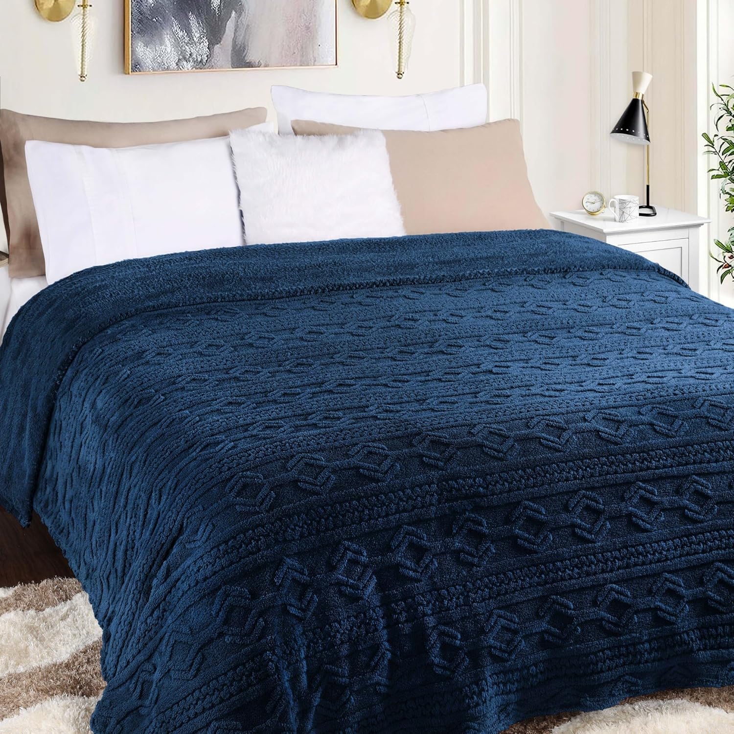 Embrace the lofty texture and incredible feel of the Boho Knit Plush Soft Fleece Blanket by Blue Nile Mills. This luxuriously soft polyester blanket features a raised jacquard design for added style and warmth. This oversized blanket is ideal for year-round comfort and will keep you comfy on cold nights. Add chic style to your bedroom or living room decor with the variety of sizes and color options available. Perfect for a quick nap on your bed, sofa, or couch, or to snuggle up watching your favorite TV show, this beautiful blanket is warm enough to use on its own or as a decorative layering accent. These plush blankets are durable and timeless in design.