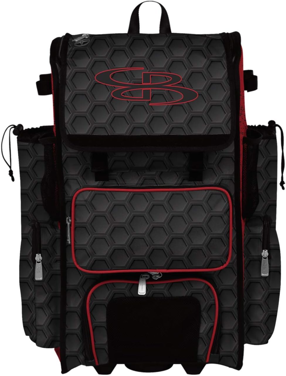 Boombah Rolling Superpack 2.0 3DHC Baseball/Softball Bat Bag - 23-1/2" x 13-1/2" x 9-1/2" - Multiple Colors - Telescopic Handle and Holds 4 Bats The new and improved Superpack Rolling Bat Bag 2.0 is an extremely durable and versatile bag for diamond sports with a focus on convenience and longevity. Key features include: - Built to Last: Engineered with the highest quality materials, our products are made to work as hard as you do - Heavy Duty Hardware: Zippers, straps, and fence hooks built for the rigorous abuse of the season - Improved Base Chassis: New molded plastic base is significantly stronger and stiffer, preventing your bag from slumping when full. It also contributes to keeping the handle in place and maintaining its strength - Larger Heavy Duty Wheels: Now 40% larger than before - now nearly 4 inches wide. The new improved wheels lift the bottom of the bag over a half inch higher off the ground to prevent scraping on dirt and gravel - Reinforced J-Hooks: Easy to hang on the fence - Shoe Compartment: Keep items separate from the dirt and dust on your shoes by storing them in an individual compartment - Telescopic Handle with Additional Handle Position: Telescoping handle has an additional, shorter height option for younger players. The handle can now be adjusted to a position 4 inches shorter than the standard, fully-extended length - Valuables Pocket: Small exterior pocket made to store your phone, keys and wallet so you can easily access what you need - Wear-Resistance Fabric: Heavy duty fabric has been added to the bottom of the bag (includes the bat sleeves), to further improve the lifespan of the bag. The material is specifically designed to resist scrapes/tearsAbout Boombah: Boombah baseball / softball products are part of our huge family of sporting gear, apparel and accessories. We design and manufacturer our own line of high quality sports equipment and gear for the sports you love.