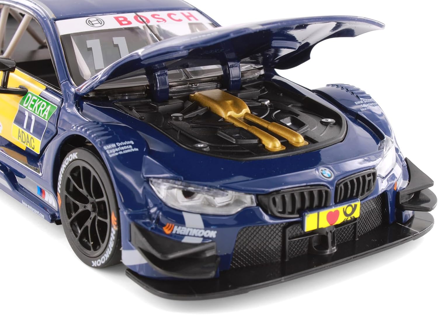 Check out this sleek racing car from Showcasts! This BMW M4 DTM w/Red Bull Racing Livery is a 1/24 scale model replica. It comes in blue and features freewheeling, steering wheel, openable doors and hood. It's a magnificent piece for any racing car collection, and perfect for fervent BMW admirers!