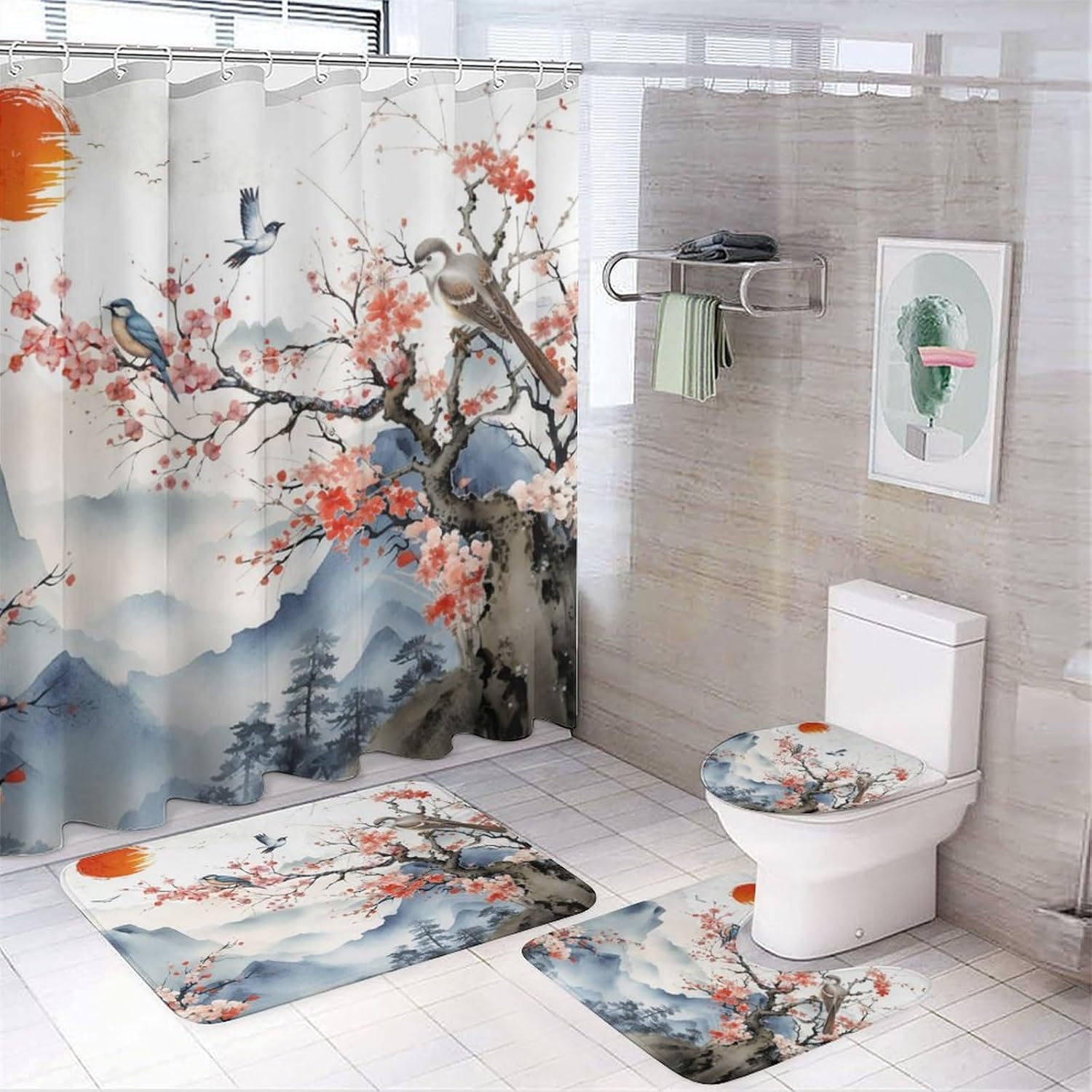 brebasf Abstract William Morris Floral Bird Patterned 4 Pieces Shower Curtain Set This Rustic Mid Century Spring Garden Green Leaves Florals 4 Pieces Shower Curtain Set liven up your indoor or outdoor spaces with a sense of airiness and beauty.Material DescriptionCoral velvet + waterproof oxford fabric (shower curtain)AccessoriesShower curtain + floor mat + long mat + toilet seatShower Curtain: 72 "W x 72 "L, Mat: 14 "W x 17.3 "L, Floor Mat:17.5 "W x 29.1 "L, Toilet Mat: 13.4 "W x 17.7 "LProduct PerformancePREFERRED MATERIAL: This brebasf shower curtain 4-piece set is made of coral velvet + waterproof oxford fabric, the fabric is soft and delicate, skin-friendly and comfortable, good touch.DURABLE: This coral velvet floor mat is super absorbent, non-slip and durable.EASY TO CLEAN: It's very easy to clean and maintain, usually cleaning just need a vacuum cleaner to absorb the dust, easy to store and easy to take care of on a daily basis. When not in use, gently roll it up and put it in the corner, long service life.WATERPROOF: This shower curtain is made of waterproof oxford fabric, waterproof performance is good, can avoid water spraying to other places in the bathroom.Applicable scenariosSuitable for home bathroom, guest room, bedroom, living room and other places.Washing Instructions Washable,not machine washable.Special NoteThis size data in the flat under the measurement, due to different measurement methods, the error of 1-2cm within the normal phenomenon.Warm reminderThe picture display effect is for reference only, the final effect in kind shall prevail! Due to production batches, machinery and equipment and other objective factors, it is difficult to avoid or there will be a small color difference, location and size errors, such as the above problems are normal phenomena, will not be included in the scope of after-sales processing.