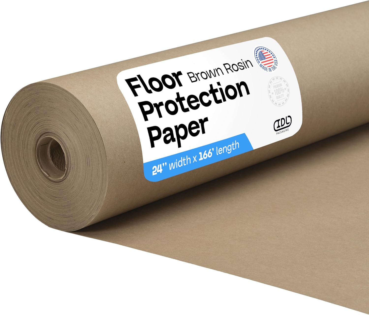 Discover the ultimate solution for protecting your surfaces with IDL Packaging's 2 Rolls of Heavy-Duty Brown Rosin Paper with Cutter. Measuring 24 inches in width and 166 feet in length, this Paint Floor Protector covers a total area of 664 sq ft., making it ideal for various applications. Crafted from 100% recyclable, unwaxed, uncoated and unbleached kraft paper, this Floor Paper is designed for durability and environmental friendliness. This heavy-duty Masking Paper Roll excels at providing superior defense against spills, overspray, and splatter. Whether for large-scale construction projects or small home renovations, our Paint Paper Roll keeps floors, windows, trims, and doors clean and protected from water-based materials like latex paint and drywall texture. Its versatility makes it perfect for both Temporary Floor Protection and long-term use. Unlike drop cloth film, this Rosin Paper tears easily to your desired length without needing scissors. Its robust construction withstands heavy foot traffic, ensuring reliable protection in high-traffic areas. Ideal for professionals and DIY enthusiasts, this Floor Covering for Protection meets the rigorous demands of job sites and home projects. In summary, IDL Packaging’s Brown Rosin Paper Roll is your go-to solution for painting Floor Covering, offering exceptional performance and convenience in one package. Ideal for both professionals and craft enthusiasts, it provides reliable protection with ease of use.