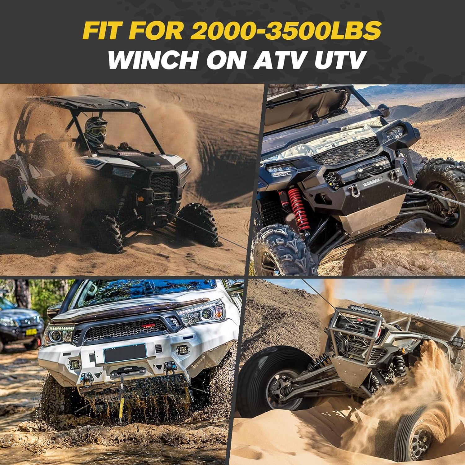 This all-in-one traction kit includes 2 heavy-duty recovery boards made of high-strength reinforced polypropylene with interlocked diamond-core design, which can flex up to 120° without cracking. The boards feature aggressive cross-shaped teeth and dual-sided diamond pattern for maximum traction on sand, mud, or snow, allowing you to get out of tricky situations without a winch or tow. It also includes steel mounting brackets for secure storage, adjustable tie-down straps, and a tough carry bag. The kit further contains a complete winch rope kit with a 3/16" x 50' synthetic winch cable composed of 12 braided dyneema strands, having an 8,200 LBS breaking strength and ultimate tensile strength. The winch rope won't kink, curl or splinter, and is workable below -20°C, making it ideal for offroad recovery on ATVs, UTVs, SUVs, and cars.