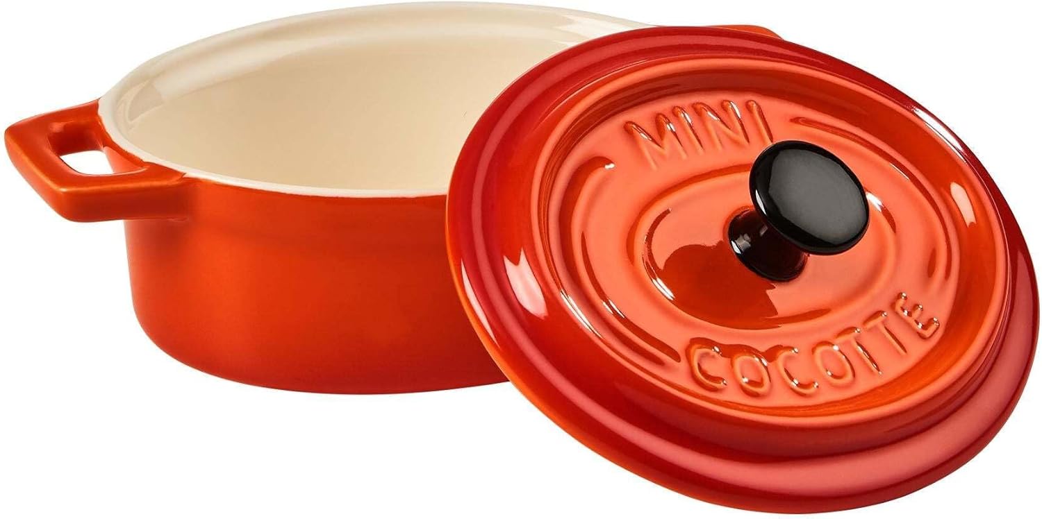 Versatile set: fireproof ceramic for mini ovens, perfect for lasagna, soufflés and small portions. The small oval casserole dishes from the C'EST SI BON series are modelled on traditional French cookware. HEAT RESISTANT MATERIAL: High quality oven baking dishes, ideal for safe baking and storage. Heat resistant up to 230 degrees. The C'EST SI BON is also dishwasher safe. PRACTICAL HANDLES AND LIDS: Soufflé ramekins and casserole dishes with lids - for easy and safe preparation. COMPACT SIZE: Perfect solution for small ovens - small casserole dishes, bowls and pots. Stylish and functional: lasagna moulds and tapas bowls made of ceramic - for attractive and functional presentation. Traditional French cookware are the small oval casserole dishes in a set of 4 from the C´est si bon series. Each casserole dish consists of a pot with handles and a matching lid. Available in various colours. And of course you have the choice of which delicacy you (over) bake in it. Heat resistant up to 230 degrees C. Uses: dining room, kitchen Width: 0 cm. Dishwasher-safe. Weight: 0 kg. Dimensions: length 14 x width 9 x height 6.5 cm, capacity: 150 ml. Height: 0.0 cm. Material: stoneware Depth: 0 cm amazon_title: BUTLERS mini oval ceramic casserole dish | small casserole dish with lid | oven-safe | also suitable as soufflé moulds and tapas bowl set Plain Festesssen christmas dinner Christmas Holiday. Suitable for dishwasher Oven-safe: yes up to max. 230 °C.