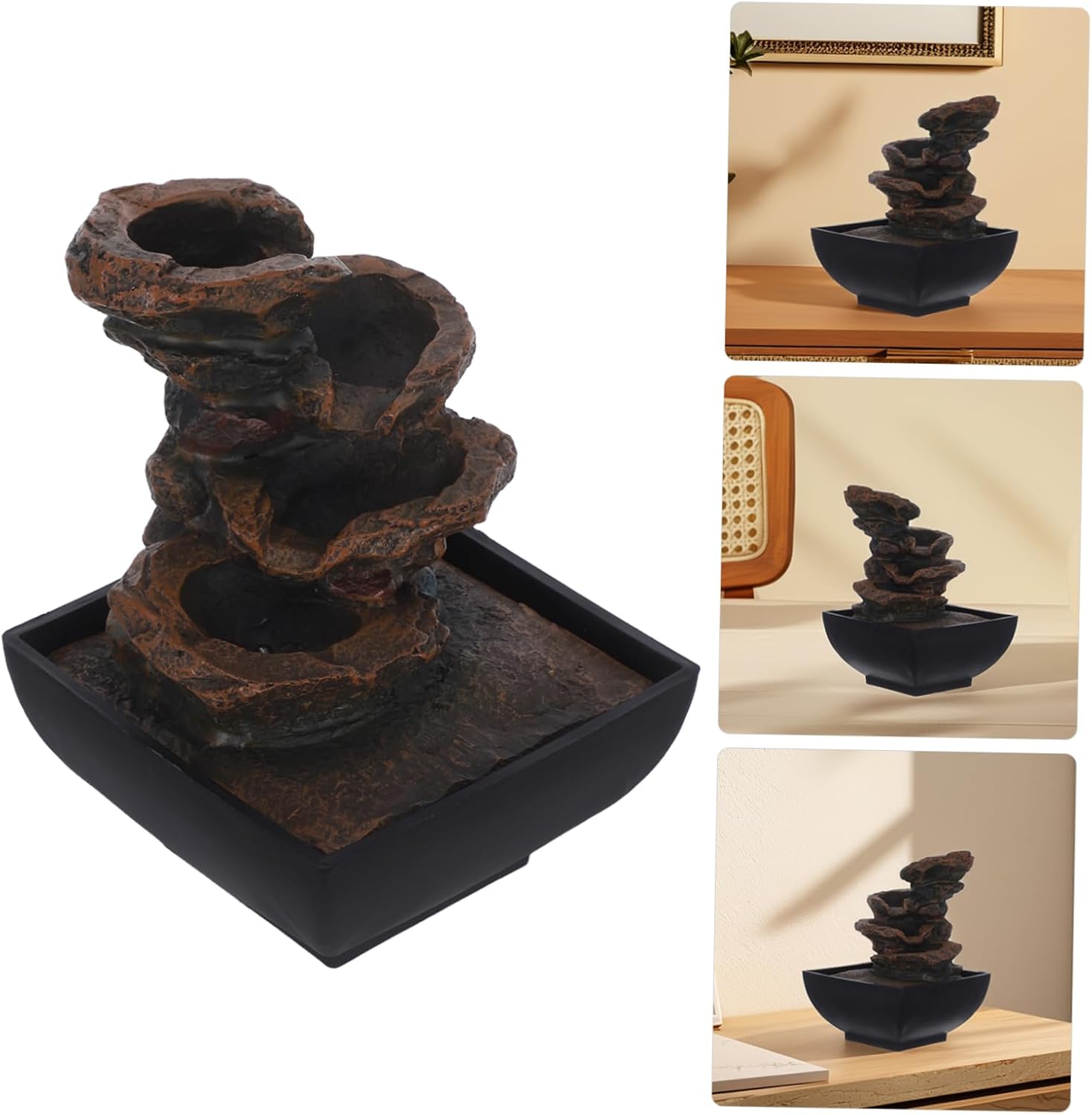 Package Include 1 x Tabletop Fountain Characteristics -Promotes calmness: the gentle sound of flowing water combined with ambient lighting creates a calming atmosphere desk fountain for office zen -Size:18.00X13.00X13.00 cm/7.07X5.11X5.11in water fountain decor -Sophisticated: the elegant structure and soothing enhance the aesthetic appeal of home table fountain - Easy maintenance: made from sturdy materials, this fountain is built to last and is easy to clean tabletop fountain -Color:Black water fountain -Material:Resin small fountain -Enhances interior decor: complements a wide range of decor, adding a touch of elegance to your living space desktop water fountain - Multi-scene: Suitable for living room, bedroom, office, tearoom, hotel, study room, garden waterfall fountain indoorGoods Informationtabletop water fountain The gentle sound of water and the soft lighting create a peaceful ambiance.water fountain decor Its stylish structure makes it a versatile decorative piece that complements any room in home.tabletop fountain This indoor water fountain offers a from the of daily life