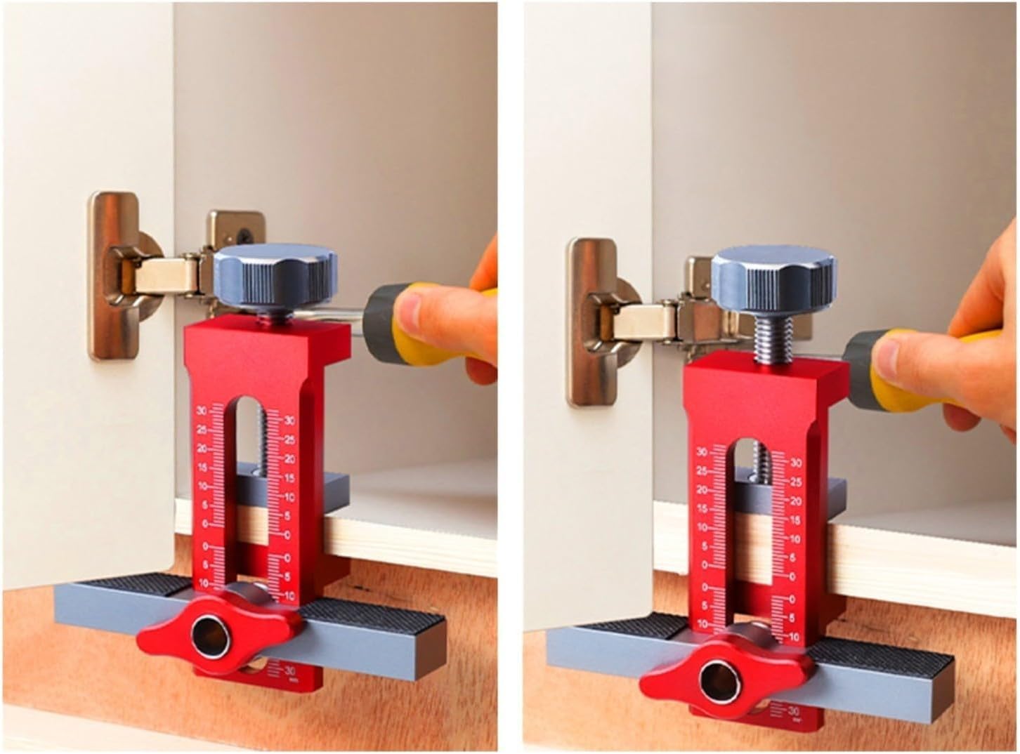 Features:Suitable for the installation of cabinets, hanging cabinets, cabinets, wardrobe doors, downward extension doors, flat bottom doors, with a wide range of applicationsSpecifications:Product Name:Cabinet Door Installation Jig Material: Aluminium AlloyPackage Content:1*Cabinet Door Installation Jig